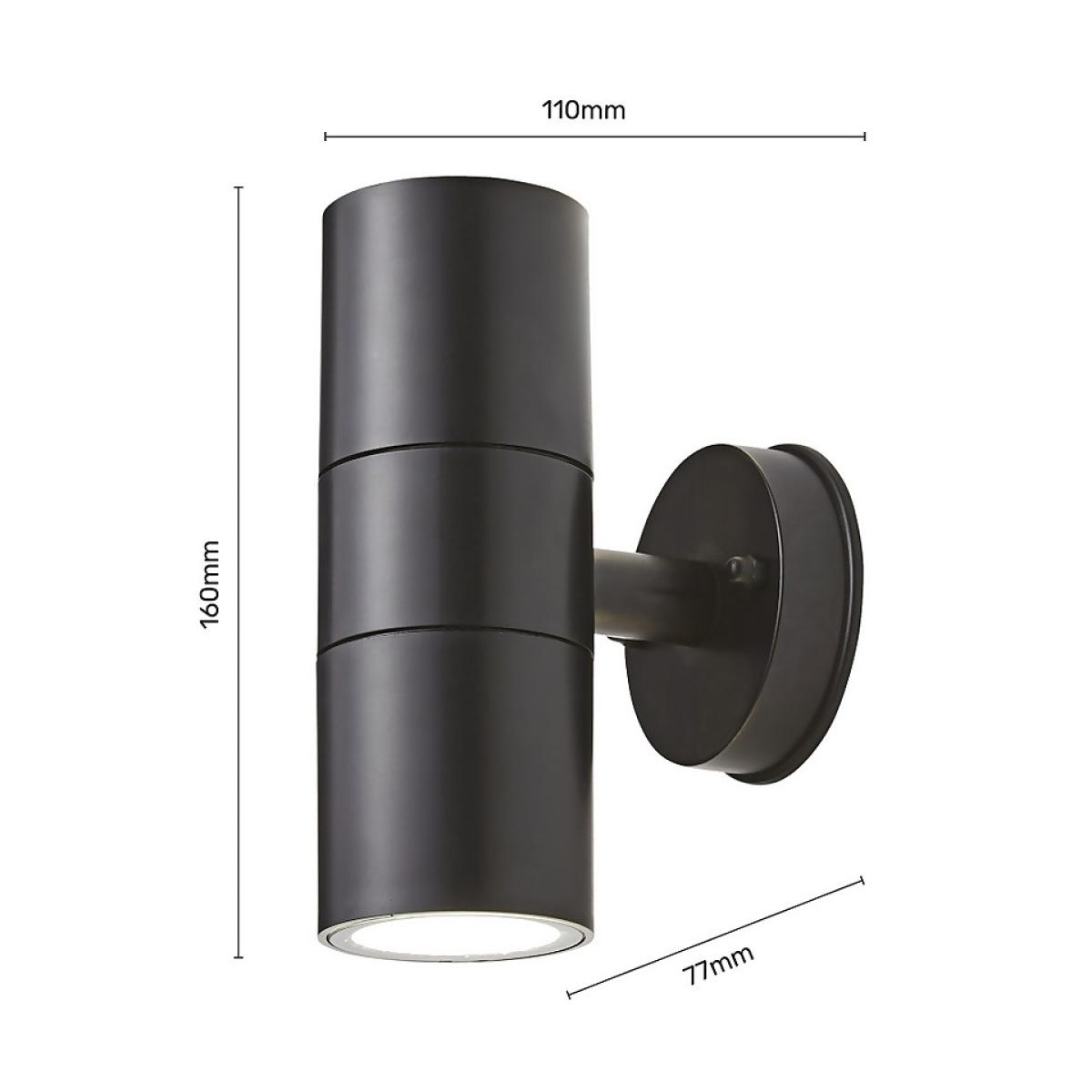 Bring a sleek and stylish look to your home with the Clovelly Up and Down Outdoor Wall Light. The compact, cylindrical shape gives this outdoor wall light a contemporary feel while its dual beam of light, both upward and downward, creates a striking visual effect enabling you to highlight specific areas of your home or garden. With its fully sealed GU10 lamp holders and IP65 rating, it's perfect for all outdoor areas and weathers.