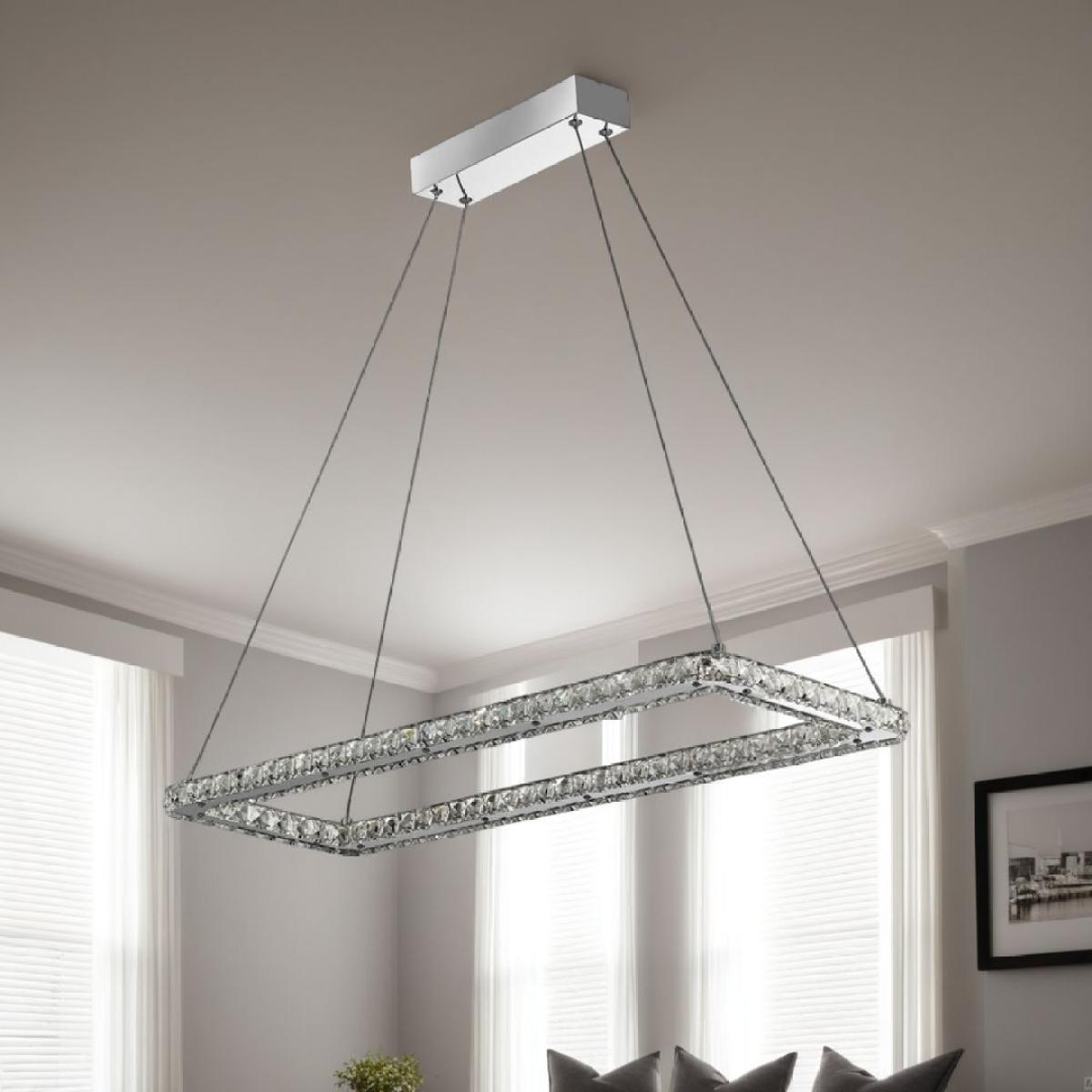 Clover rectangular ceiling pendant, featuring clear glass pieces, a polished chrome finish and integrated LED technology. A stunning fixture that combines glamorous aesthetics with modern design, this pendant light features an array of clear glass pieces that create a dazzling display of light and reflections. The polished chrome finish adds a touch of sophistication and contemporary flair. Integrated LED technology ensures energy-efficient illumination, making this pendant both stylish and sustainable. Ideal for dining areas, kitchen islands or living spaces, the Clover pendant light provides ample illumination while serving as a stunning focal point. Its sleek combination of clear glass, polished chrome and LED technology makes it a versatile addition to any modern interior. Clover rectangular ceiling pendant, featuring clear glass pieces, a polished chrome finish and integrated LED technology. A stunning fixture that combines glamorous aesthetics with modern design, this pendant light features an array of clear glass pieces that create a dazzling display of light and reflections. The polished chrome finish adds a touch of sophistication and contemporary flair. Integrated LED technology ensures energy-efficient illumination, making this pendant both stylish and sustainable. Ideal for dining areas, kitchen islands or living spaces, the Clover pendant light provides ample illumination while serving as a stunning focal point. Its sleek combination of clear glass, polished chrome and LED technology makes it a versatile addition to any modern interior.