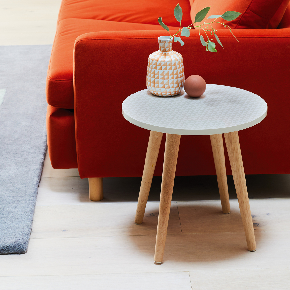 I really like this side table for its versatile design and understated appeal. The grey patterned top adds visual interest without overwhelming a space, making it suitable for both contemporary and pared-back interiors. Its solid wood legs give it strength and warmth, which pairs well with natural textures or Scandinavian-inspired decor. I recommend using it as a bedside table or alongside a sofa as a convenient surface for a lamp, drinks, or books. To style it effectively, keep accessories minimal; a small plant, a candle, or a stack of books work nicely to create a lived-in yet curated look. Its neutral palette allows it to blend seamlessly into various colour schemes and schemes, making it a flexible addition to any room.