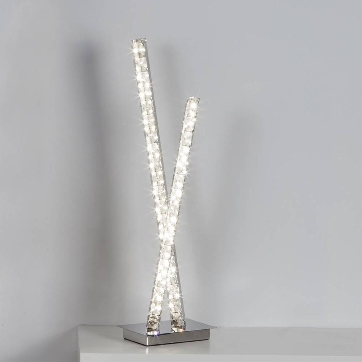 Clover LED 2 Light Table Lamp Polished Chrome The Clover LED 2 Light Table Lamp is a contemporary piece from Searchlight. It features 2 interlinked lights which cross over one another, each boasting crystal detailing and a polished chrome finish. LED lighting behind the crystals create a mesmerizing effect when lit. Ideal for use in the living room or dining room. Clover LED 2 Light Table Lamp Polished Chrome The Clover LED 2 Light Table Lamp is a contemporary piece from Searchlight. It features 2 interlinked lights which cross over one another, each boasting crystal detailing and a polished chrome finish. LED lighting behind the crystals create a mesmerizing effect when lit. Ideal for use in the living room or dining room.