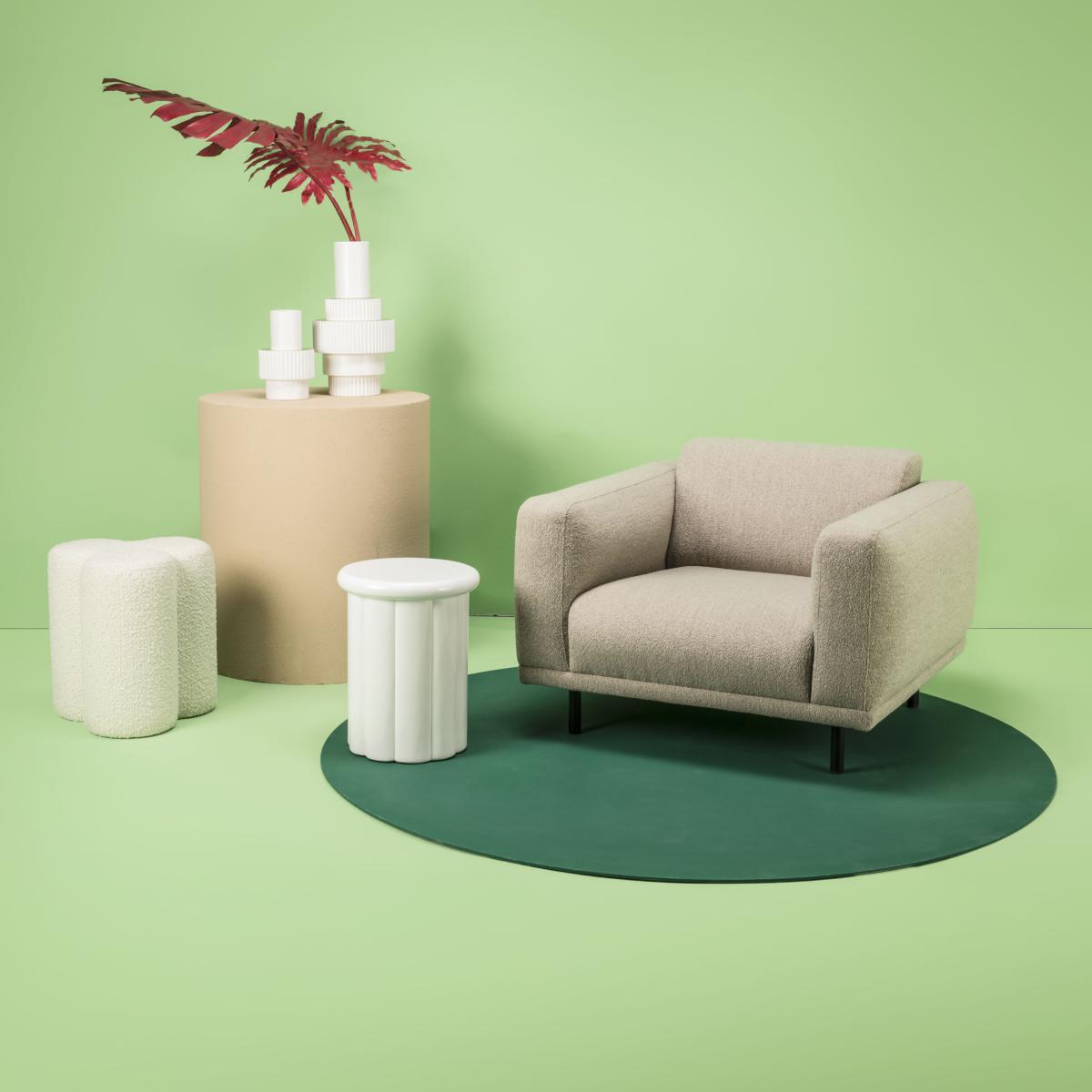 The Clover pouffe is upholstered in a wonderful terry loop fabric: this downy and comforting material wraps around its soft rounded shapes. Clover blurs the lines between relaxed comfort and great sophistication. With its subtly original rounded forms and its clean lines, it is perfect for adding a touch of warm elegance to a home.