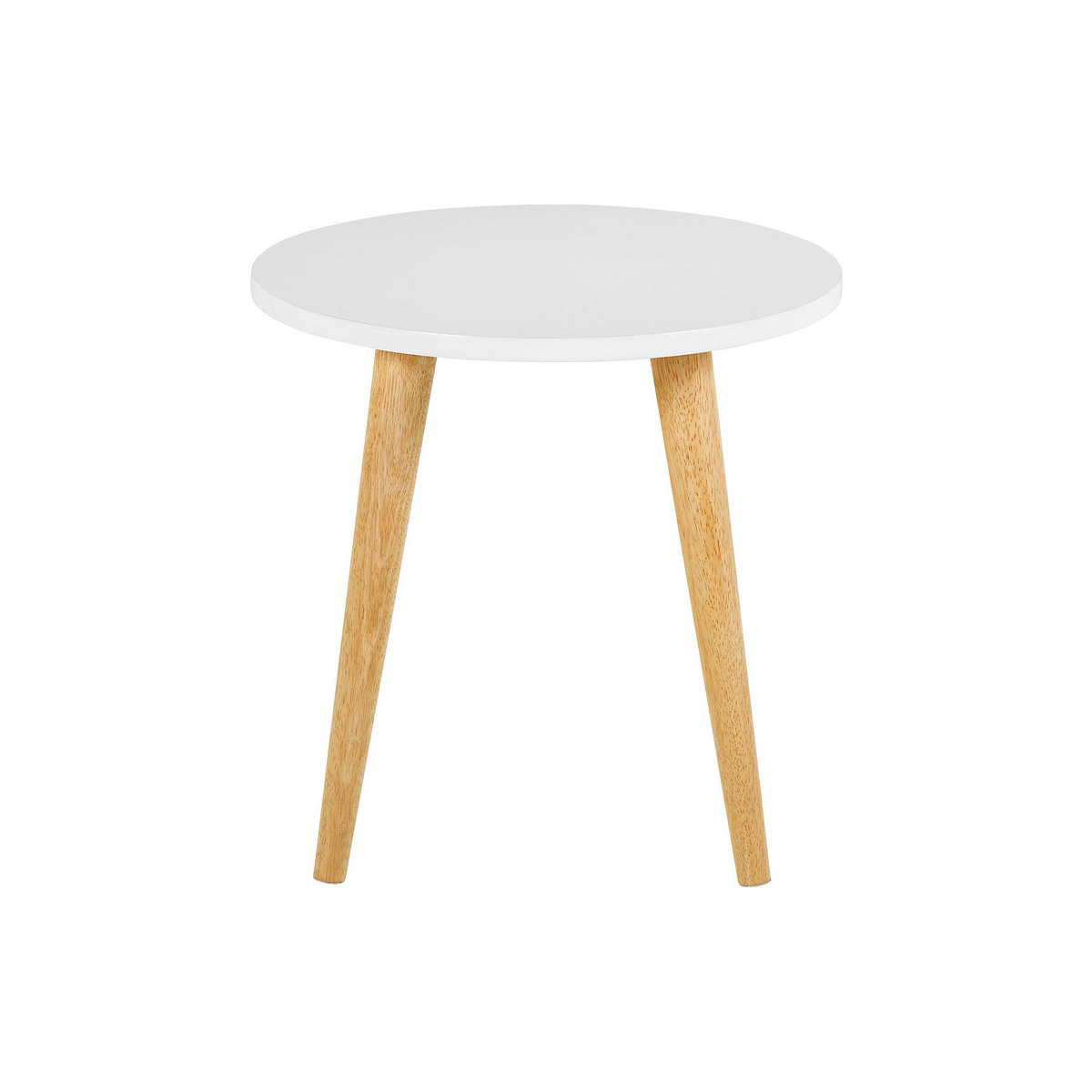The versatile Clover white side table is a clean-lined, contemporary design with feature solid timber legs. Perfect for small spaces, the table sits next to a sofa or bed, providing space for a lamp, books, drinks, and complements most modern schemes.