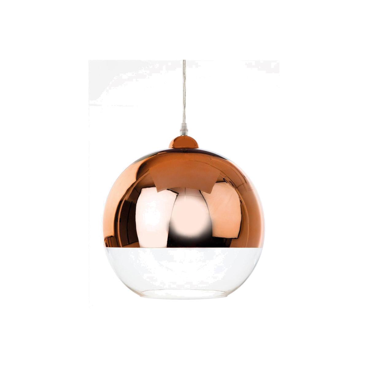 The elegant style of the Club 1-Light Copper and Glass Ceiling Pendant Fixture makes it a natural for a contemporary space. The gleaming copper adds shine while the glass globe diffuses the light for a soft and pleasing glow. Add this wonderful fixture to a dining area or workspace for sleek style.