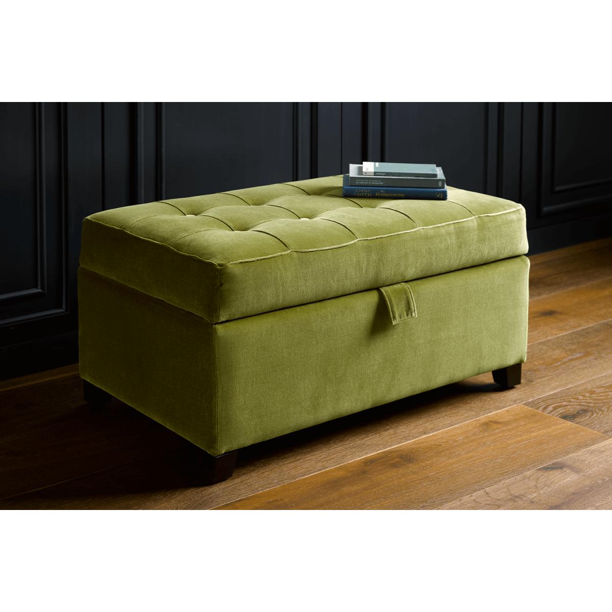 Club Large Rectangular Storage Footstool in Vine Leaf Organic Smart Cotton