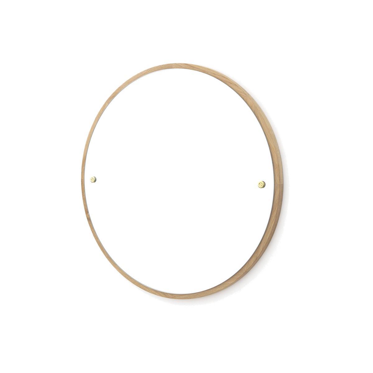 A sleek, warm look for this round mirror in natural oak. The CM-1 mirror displays a well-crafted finish. The glass mirror is fixed to the solid oak support with two intentionally visible brass screws. This mirror will look great on every wall in your house: entrance, bathroom or bedroom.