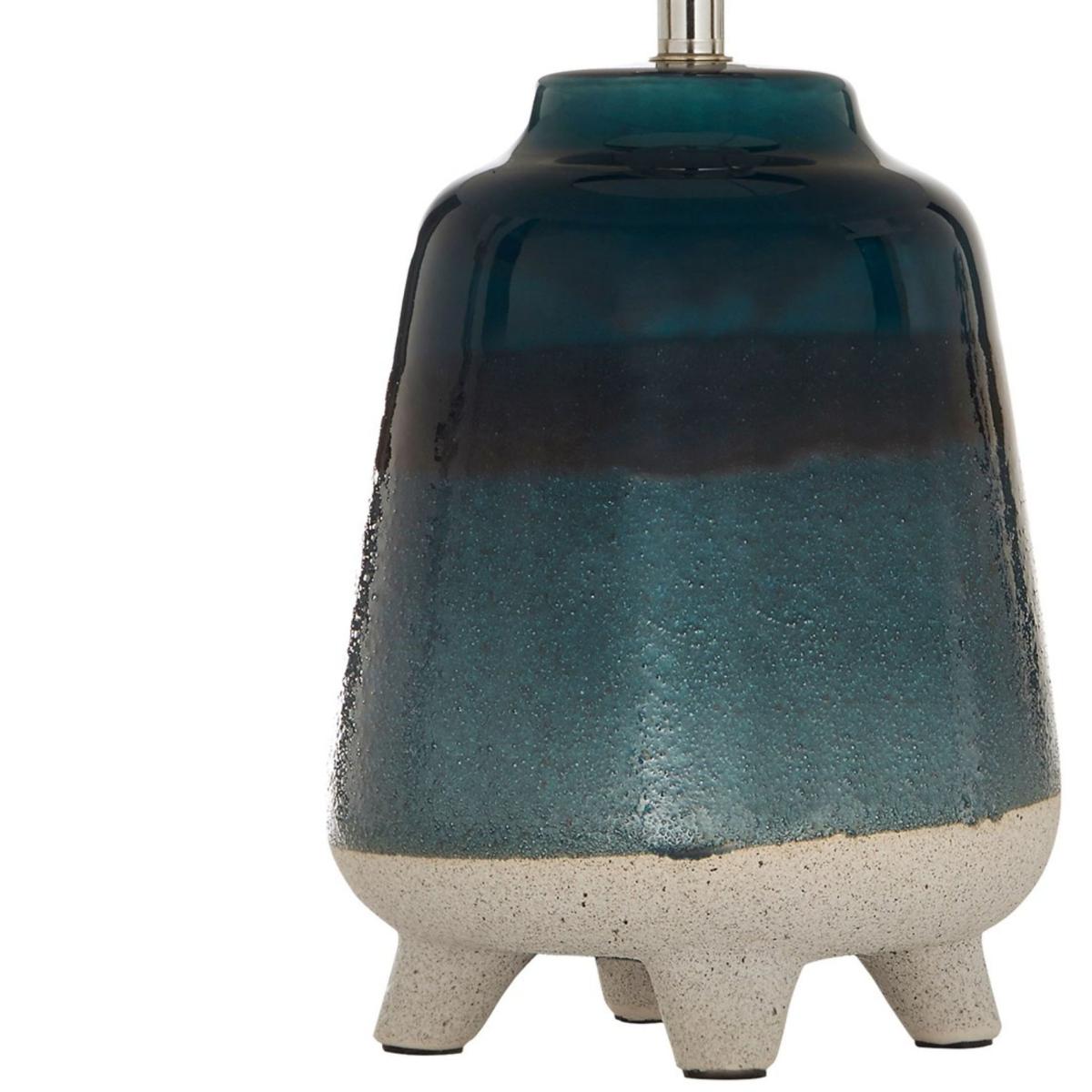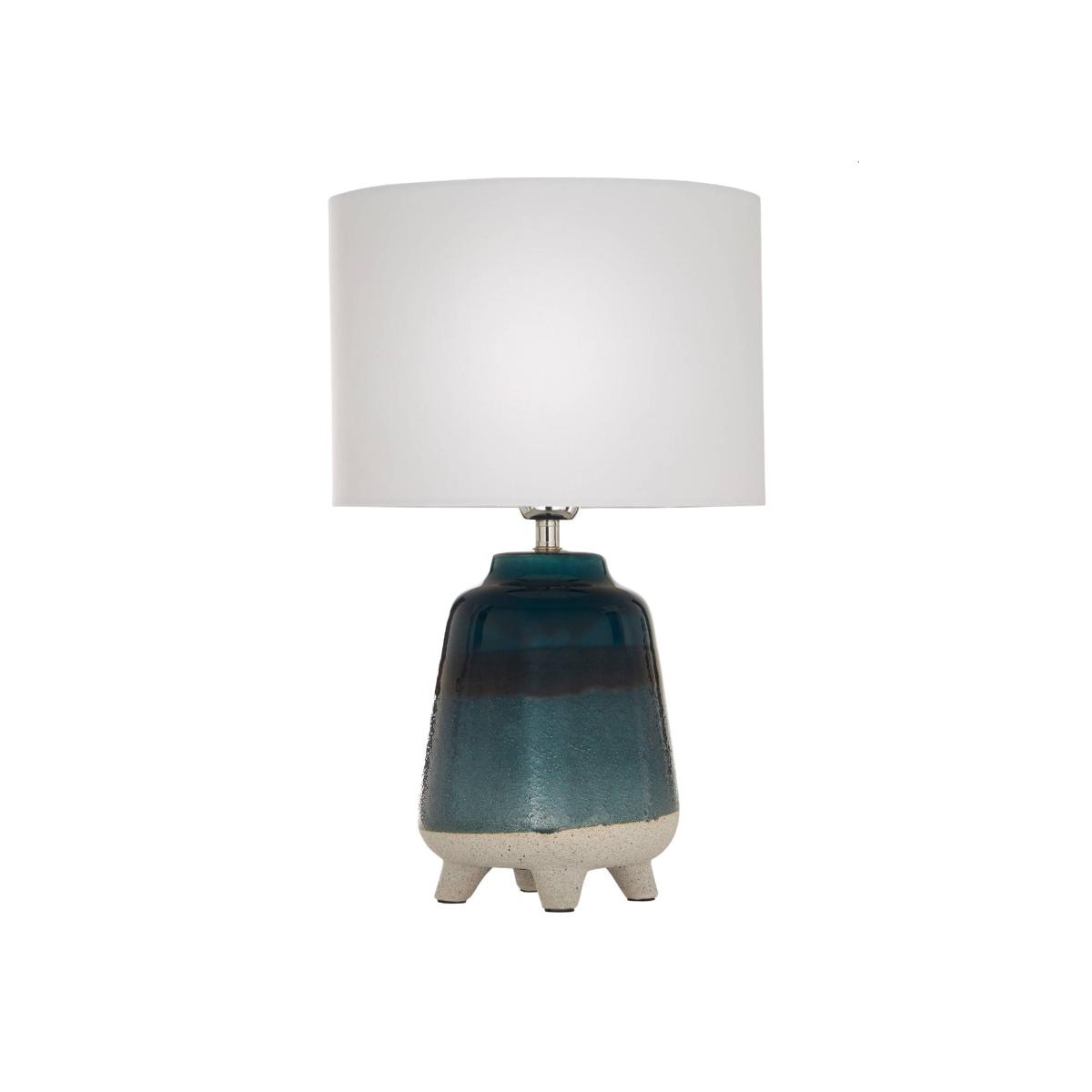 Coast 1-light ceramic table lamp, featuring a textured, sandy-coloured base which transitions into glossy blues. Elevated by its ceramic legs and paired with a white drum shade. The Coast table lamp captures the essence of seaside charm with its textured, sandy-coloured base that gracefully transitions into glossy, deep blue tones, evoking the ebb and flow of ocean waves. The unique design is elevated by its ceramic legs, adding a touch of craftsmanship and visual interest to its profile. Paired with a white drum shade, this lamp creates a soft, calming light that perfectly complements its coastal-inspired aesthetic. Whether used as a feature piece in a living room or to add a serene vibe to a bedroom, the Coast table lamp brings a blend of texture, colour and sophistication to any space. Coast 1-light ceramic table lamp, featuring a textured, sandy-coloured base which transitions into glossy blues. Elevated by its ceramic legs and paired with a white drum shade. The Coast table lamp captures the essence of seaside charm with its textured, sandy-coloured base that gracefully transitions into glossy, deep blue tones, evoking the ebb and flow of ocean waves. The unique design is elevated by its ceramic legs, adding a touch of craftsmanship and visual interest to its profile. Paired with a white drum shade, this lamp creates a soft, calming light that perfectly complements its coastal-inspired aesthetic. Whether used as a feature piece in a living room or to add a serene vibe to a bedroom, the Coast table lamp brings a blend of texture, colour and sophistication to any space.