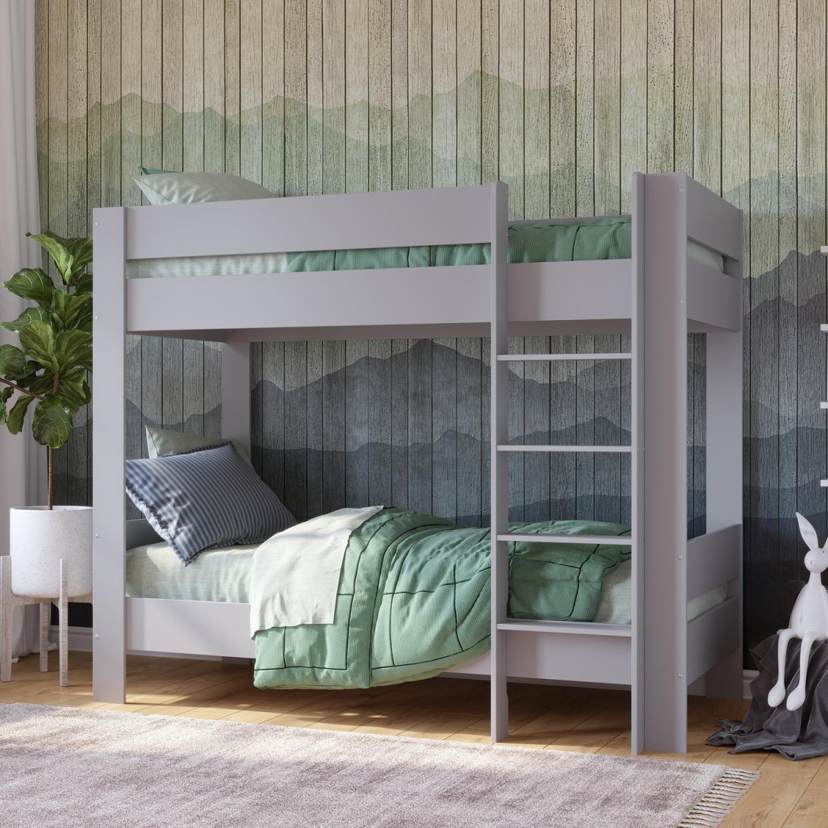 The Bunk Bed and Mid-Sleeper have a design that meet the requirements of any modern bedroom. The straight lines and wide panels give it a contemporary aesthetic, as well as a strong and durable construction that meet all UK and European safety standards. The Bunk Bed and Mid-Sleeper are designed to maximise space in any bedroom, the bunk bed ideal for those who share a room and the mid sleeper allowing space beneath for storage units or play. Available in white to fit any room setting or a cool grey that adds calming element and a twist to the norm. The Bunk Bed and Mid-Sleeper has a security rail on the higher sleeping level for a safer sleeping experience. The solid bed slats are designed to allow air flow through the mattress, for both comfort, and to prolong the life of the mattress. The Bunk Bed and Mid-Sleeper will arrive boxed and flat-packed with detailed instructions for an easy self-assembly.