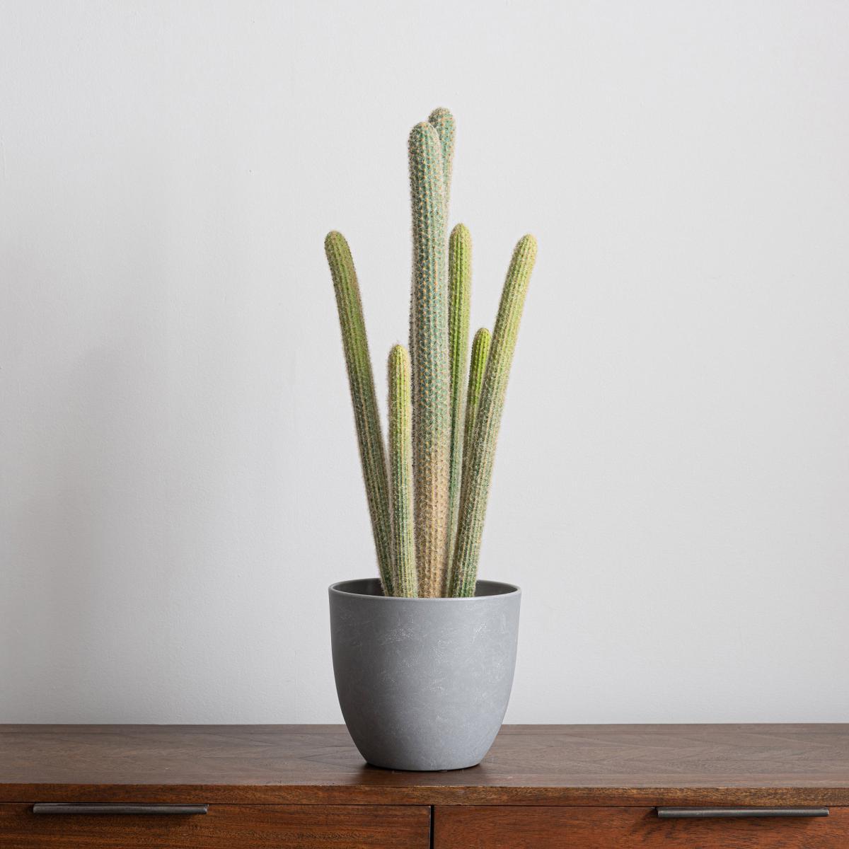 Ideal for display throughout the home, this eye-catching, large artificial cactus in a modern grey pot is the statement piece you need for your home. With flocked detailing on the cactus, this piece has a highly realistic finish, while requiring no maintenance, bringing the outside in, without the hassle!.