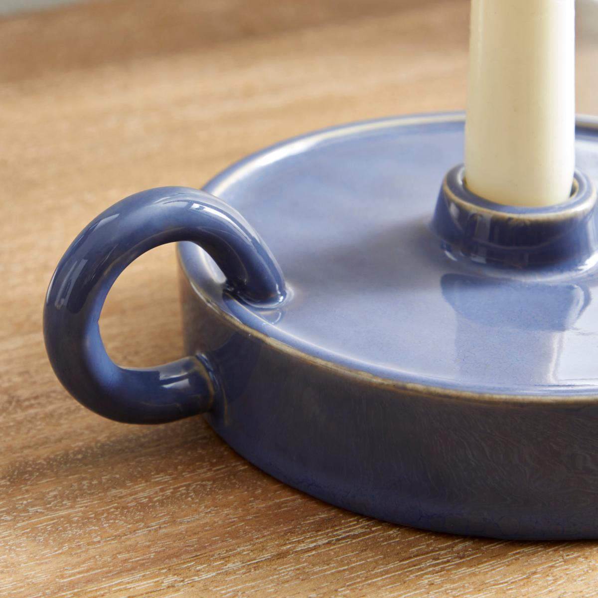 Made from ceramic with a reactive glaze, this stunning candle holder has side handles to allow for easy carrying. Designed for taper candles, this easy to wipe clean piece will add a glamorous look and feel to any room of the house.