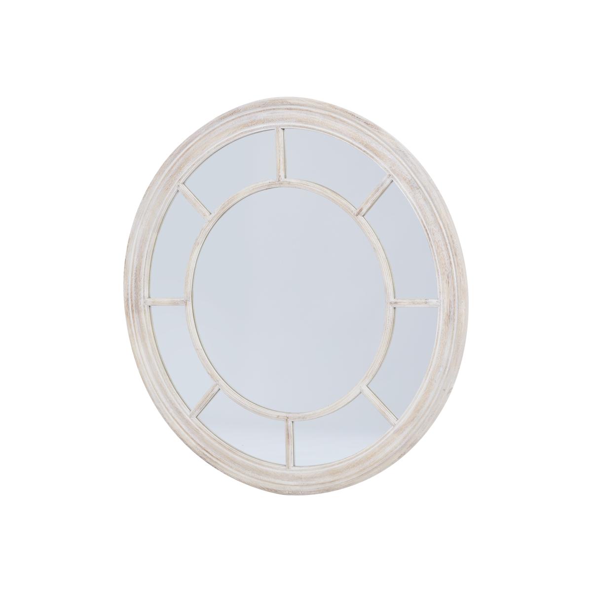 A stunning reflection of traditional craftsmanship meets coastal charm in this round mirror with a washed wood frame. The weather-worn patina creates an authentic aged appearance, mimicking driftwood found along sun-bleached shores. The muted, organic tones complement both modern and rustic interior schemes, making it an essential addition to any retail collection. This piece pairs exceptionally well with our Seeded Eucalyptus Stem for a natural accent, the Kubu Rattan Storage Baskets for textural harmony, and the Dolce series of botanical canvas prints which echo its circular motif. The Athena Stone Hurricane Lantern provides an ideal accompaniment, sharing similar weathered characteristics. For a cohesive display, consider matching it with our Grey Washed Photo Frames, which maintain the consistent design language. The careful balance of size and visual weight ensures this mirror functions as both a practical item and decorative focal point. Its versatile aesthetic appeals to customers seeking both contemporary and traditional styling options, while the neutral palette ensures compatibility with diverse color schemes. The artisanal finish technique creates subtle variations in each piece, offering customers a sense of uniqueness. As a statement piece that works equally well in entryways, living spaces, or bathroom settings, this mirror represents an excellent investment for retailers targeting design-conscious consumers.