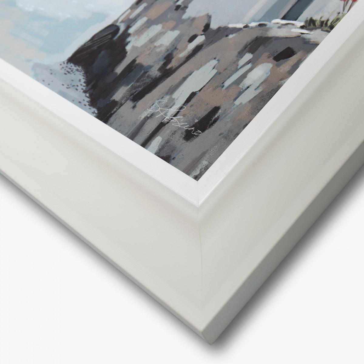 I love this seaside scene because it offers a calming, coastal vibe that works well in both contemporary and traditional interiors. It's especially effective in living rooms, hallways, or coastal retreats, where it brings a touch of the nautical without feeling overbearing. To style it successfully, consider pairing it with natural textures like jute rugs, wicker accessories, or soft linen cushions. Placing it above a neutral sofa or a simple console table will help it stand out as a focal point, while matching the frame's subtle tones can create a cohesive, relaxed look. It's versatile enough to work in both colour and neutral schemes, making it a practical choice for adding a touch of seaside charm.