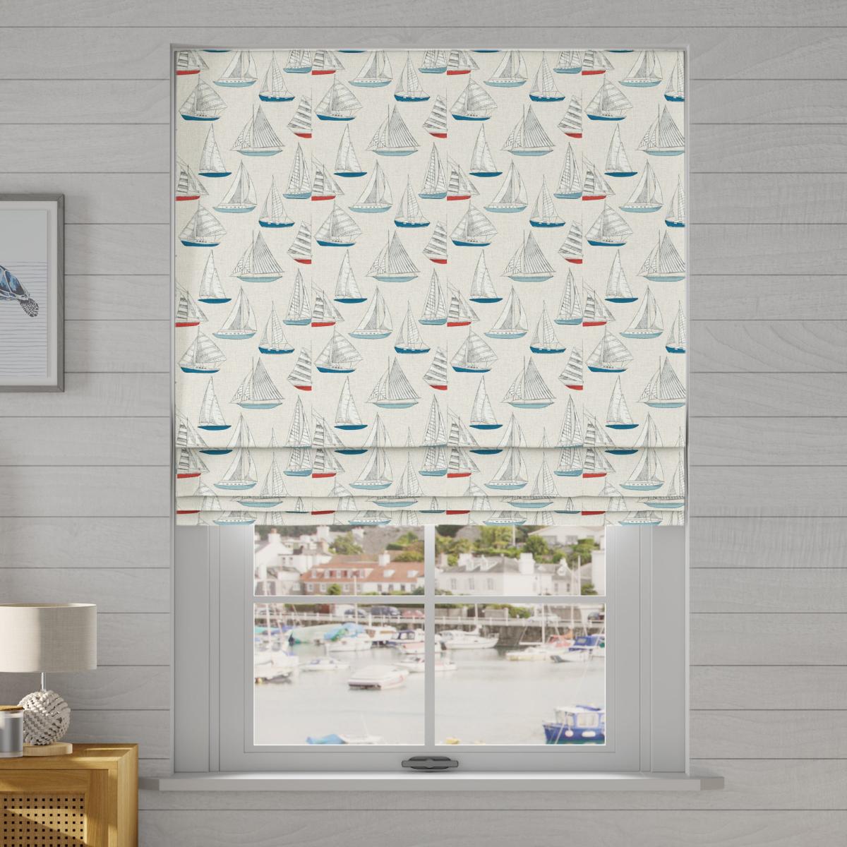 A regatta of sailing yachts are beautifully presented across a rich navy or unintrusive pale background to suit your style and home. Featuring classic coastal colours, this print is inspired by holidays on the Devon coast to inspire a calming nautical atmosphere into the home. Our Web Exclusive Coastal range features 9 beautiful, unique designs for curtains, upon a 100% cotton fabric base, and includes a wide range of styles. Introducing bright and breezy seaside designs into your décor, like Lundy, Gulls, Ocean Yatch, Clovley, Salcombe Stipe and Seaton Stripe, will create a stunning, colourful focal point in any room. 100% natural fibres like cotton are kinder to the environment, as well as to our skin, being naturally hypoallergenic, meaning they are ideal for sensitive and allergy-prone skin, as well as having unique anti-bacterial qualities. You can feel confident that our Coastal range will be gentle to the environment, and to those who may sit close. Choosing your lining:. Choosing your fitting type:. ;. Choosing which side you’d like the operating chain:. Child Safety:. We add clips to the back of our roman blinds to attach the cords to the fabric. They also double up as a child safety feature. If pressure is exerted the clips will detach to prevent the risk of strangulation. Please read our. Blinds Safety Guide. For more information. If the clips detach accidentally during normal use, they can be easily re-clipped back into place. Online Only:. This product is only available to order online. Our expert virtual consultants can provide advice on measuring/fitting and style tips and our free samples can be ordered online to be delivered straight to your home to help you choose a fabric that's right for you. Once you're happy, simply place your order online and we'll do the rest.