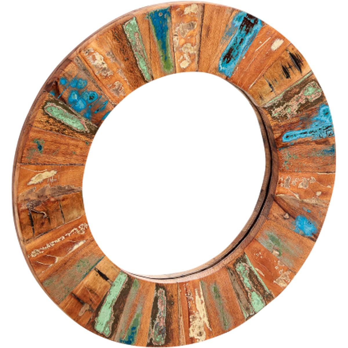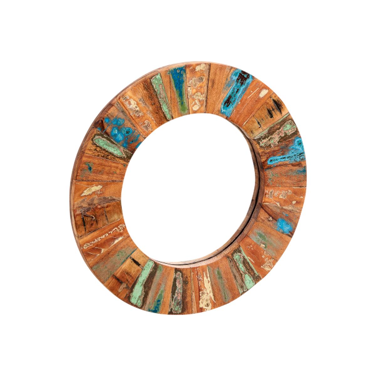 Coastal Reclaimed Wood Large Round Wall Mirror - Multi