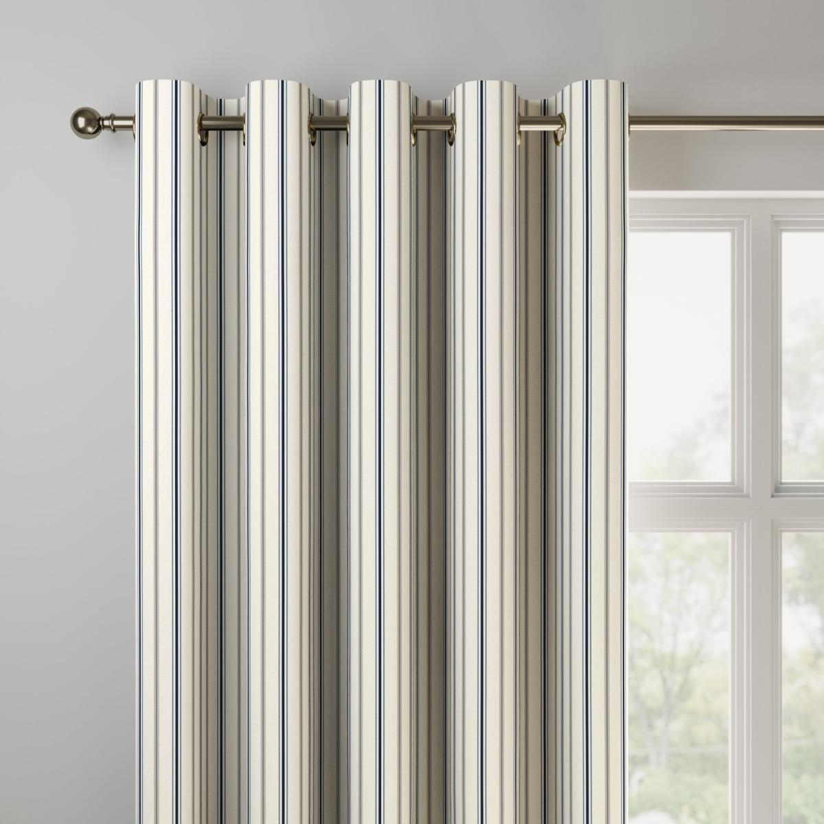 Clean, classic, timeless, and crisp, this stunning understated striped design exudes a nautical look and colour scheme, inspired by holidays on the Devon coast. Sitting on a quiet, unintrusive pale background and 100% cotton fabric base, this fabric brings peace and tranquillity into any room. Our Web Exclusive Coastal range features 9 beautiful, unique designs for curtains, upon a 100% cotton fabric base, and includes a wide range of styles. Introducing bright and breezy seaside designs into your décor, like Lundy, Gulls, Ocean Yatch, Clovley, Salcombe Stipe and Seaton Stripe, will create a stunning, colourful focal point in any room. 100% natural fibres like cotton are kinder to the environment, as well as to our skin, being naturally hypoallergenic, meaning they are ideal for sensitive and allergy-prone skin, as well as having unique anti-bacterial qualities. You can feel confident that our Coastal range will be gentle to the environment, and to those who may sit close. For windows that cannot wait, shop our range of. Ready Made Curtains. Please note: you measure for pinch pleat curtains in the same way as pencil pleat curtains. Online Only:. This product is only available to order online. Our expert virtual consultants can provide advice on measuring/fitting and style tips and our free samples can be ordered online to be delivered straight to your home to help you choose a fabric that's right for you. Once you're happy, simply place your order online and we'll do the rest.