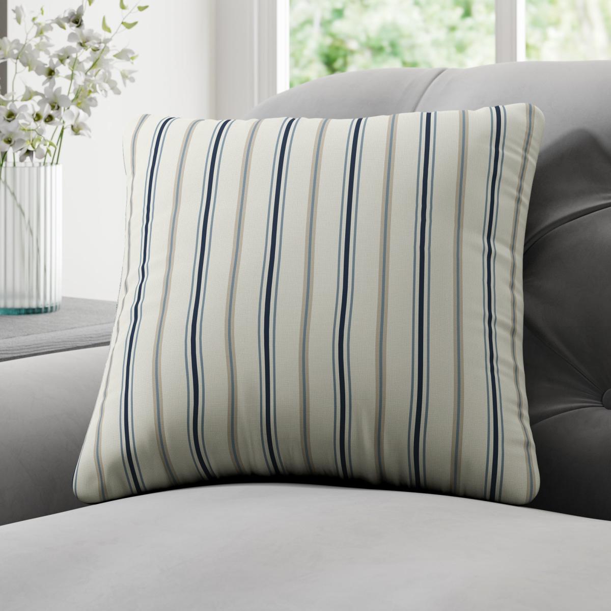 Our cushion covers are crafted with durable materials and is a great way to complement and finish off your made to measure curtains. This stunning understated striped design exudes a nautical look and colour scheme, inspired by holidays on the Devon coast. Our Web Exclusive Coastal range features 9 beautiful, unique designs for curtains, upon a 100% cotton fabric base, and includes a wide range of styles. Introducing bright and breezy seaside designs into your décor, like Lundy, Gulls, Ocean Yatch, Clovley, Salcombe Stipe and Seaton Stripe, will create a stunning, colourful focal point in any room. 100% natural fibres like cotton are kinder to the environment, as well as to our skin, being naturally hypoallergenic, meaning they are ideal for sensitive and allergy-prone skin, as well as having unique anti-bacterial qualities. You can feel confident that our Coastal range will be gentle to the environment, and to those who may sit close. Online Only: This product is only available to order online. Our expert virtual consultants can provide advice on measuring/fitting and style tips and our free samples can be ordered online to be delivered straight to your home to help you choose a fabric that's right for you. Once you're happy, simply place your order online and we'll do the rest.
