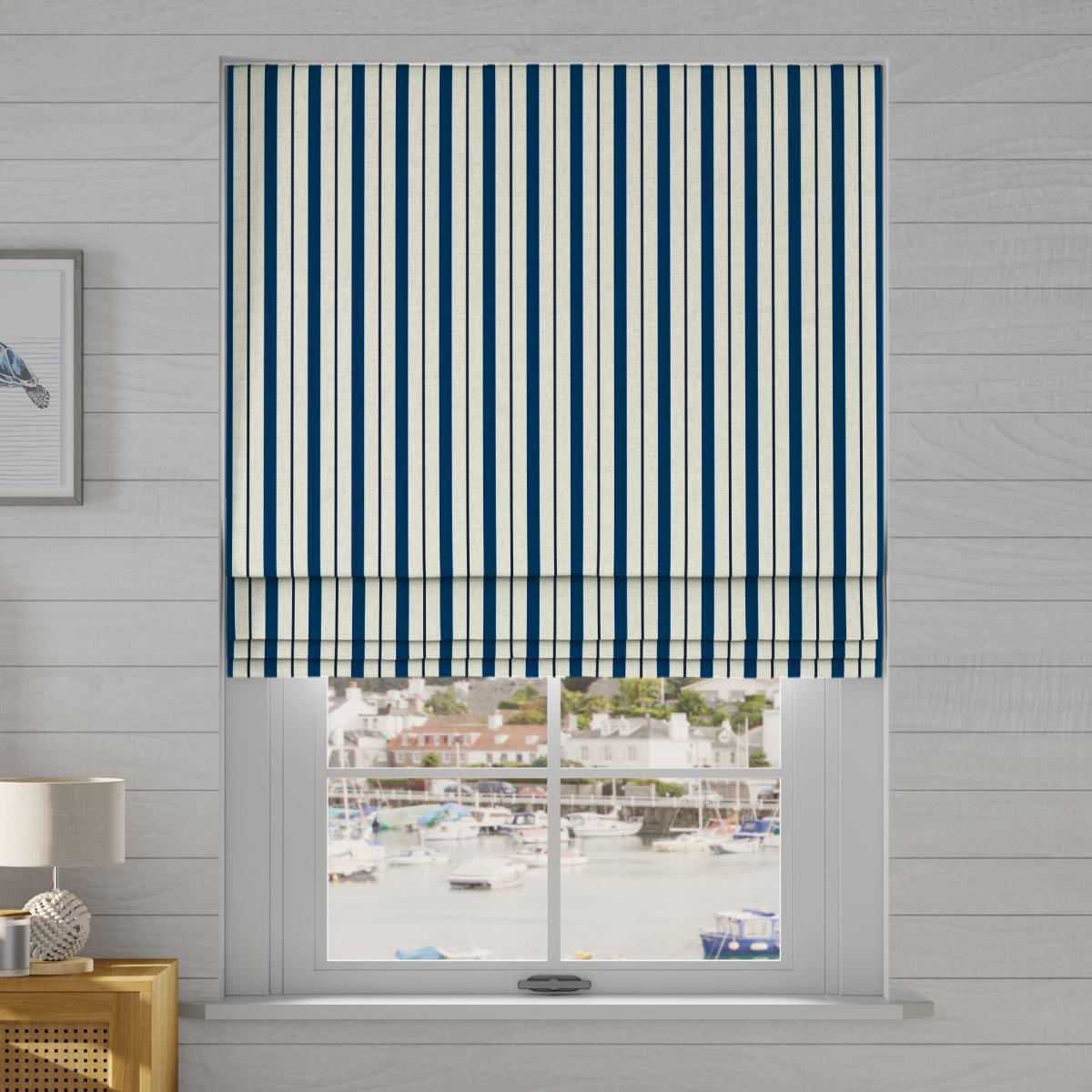 The Seaton Stripe fabric is designed with clean, crisp stripes that exudes a nautical look and feel. Inspired by holidays on the Devon coast, the stripe design contrasts against the quiet and unintrusive pale background. Our Web Exclusive Coastal range features 9 beautiful, unique designs for curtains, upon a 100% cotton fabric base, and includes a wide range of styles. Introducing bright and breezy seaside designs into your décor, like Lundy, Gulls, Ocean Yatch, Clovley, Salcombe Stipe and Seaton Stripe, will create a stunning, colourful focal point in any room. 100% natural fibres like cotton are kinder to the environment, as well as to our skin, being naturally hypoallergenic, meaning they are ideal for sensitive and allergy-prone skin, as well as having unique anti-bacterial qualities. You can feel confident that our Coastal range will be gentle to the environment, and to those who may sit close. Choosing your lining:. Choosing your fitting type:. ;. Choosing which side you’d like the operating chain:. Child Safety:. We add clips to the back of our roman blinds to attach the cords to the fabric. They also double up as a child safety feature. If pressure is exerted the clips will detach to prevent the risk of strangulation. Please read our. Blinds Safety Guide. For more information. If the clips detach accidentally during normal use, they can be easily re-clipped back into place. Online Only:. This product is only available to order online. Our expert virtual consultants can provide advice on measuring/fitting and style tips and our free samples can be ordered online to be delivered straight to your home to help you choose a fabric that's right for you. Once you're happy, simply place your order online and we'll do the rest.