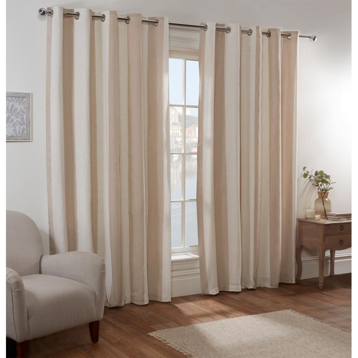 Coastal Stripe Eyelet Curtains - Natural / 183cm / 168cm