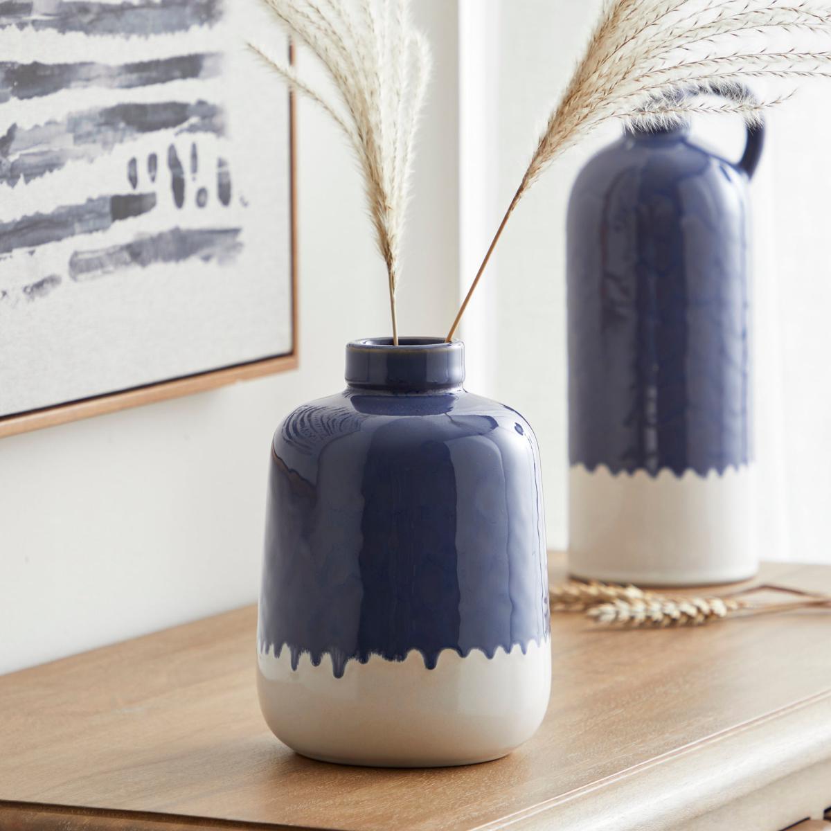 Designed with a two-tone colourway, this classic style vase is made from ceramic, with a reactive glaze finish. Easy to wipe clean, this piece will add a touch of style to any room of the house, whether its placed on its own or as part of a display.