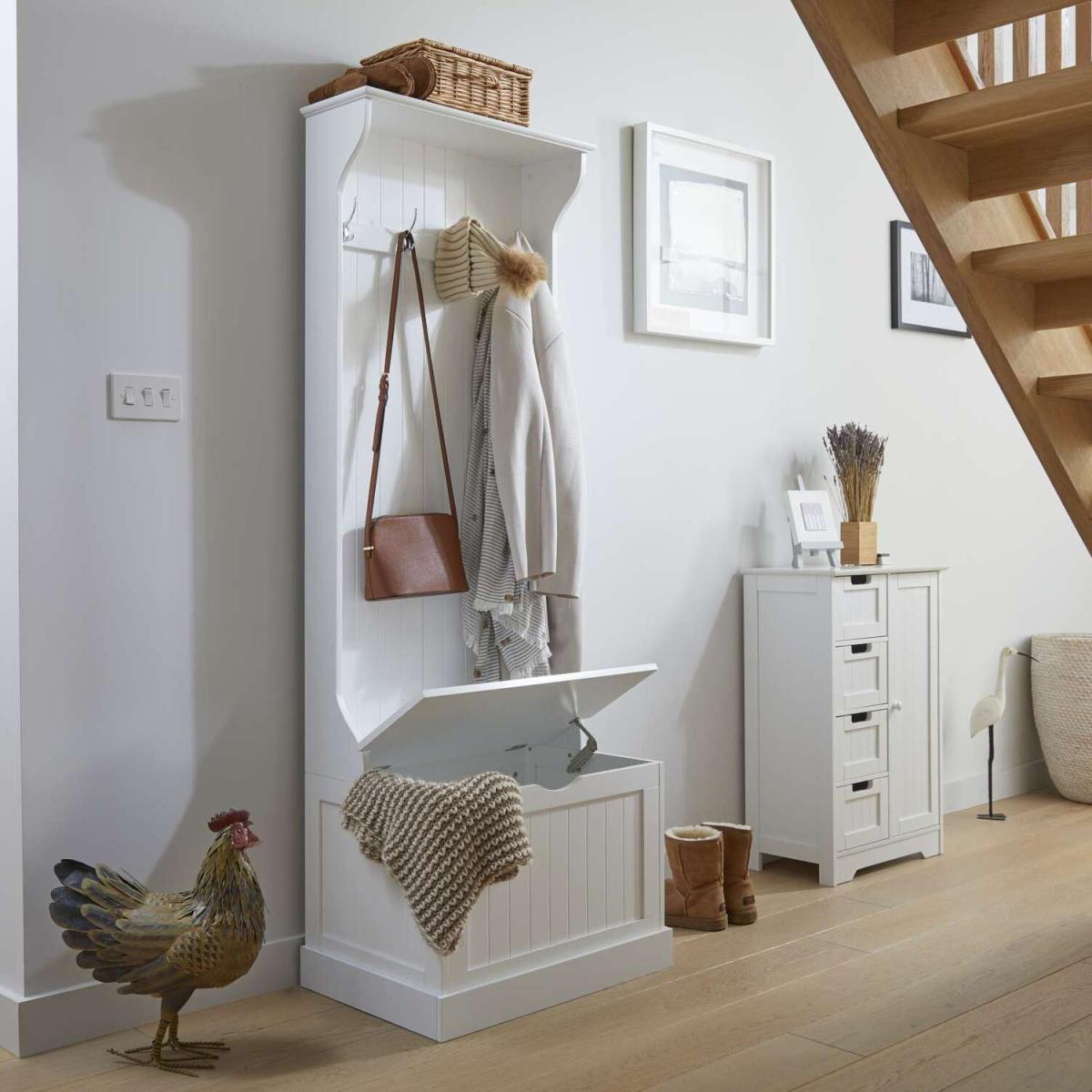 An aesthetic and functional solution to hallway storage, the Coat Rack Hallway Unit boasts four double hooks for hanging jackets, bags, scarves, and more, as well as a built-in box compartment at the base to hide away home essentials like shoes, blankets and brollies. The grooved design and slatted backboard will give a timeless feel to the hall, impressing visitors as they enter your home.