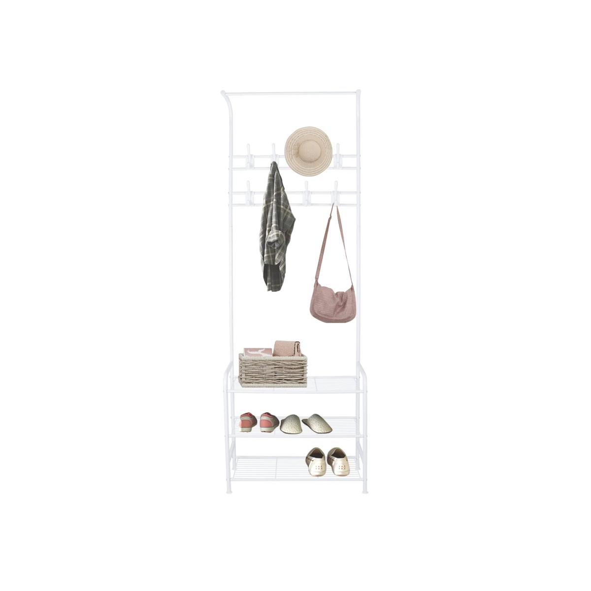 With 16 coat hooks and 3 3-tier shoe racks, the coat stand helps you keep your entryway neat, keep your clothes and items organised and easy to access, satisfy a variety of storage demands, large capacity, is space-saving, concise and convenient. With 4 adjustable feet, the free-standing coat hanger and shoe bench can stand perfectly stable on carpets or uneven floors. The bottom non-slip pad can slip and protect your floor from scratches. Strengthen and thicken steel pipe with matte finish, adopt high-end automobile painting process, ensure health and environmental protection, and no pungent smell. Rustproof and wear-resistant, stronger bearing capacity. The coat hat rack is suitable to be placed in the porch and behind the door. It is convenient to receive shoes, clothes, hats, bags, scarves, umbrellas, etc. Suitable for office, home, shop, etc. Easy to install, with easy-to-use instructions and simple parts that can be assembled in minutes.