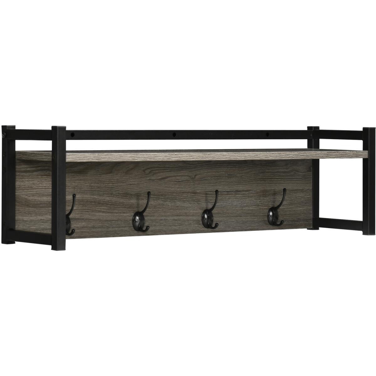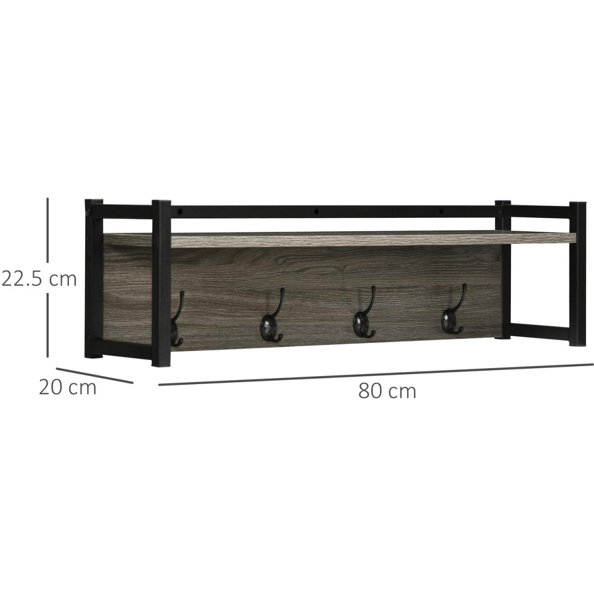 Easy, convenient storage for the hallway, the kitchen and beyond: say hello to this hanging rack from HOMCOM. A metal frame which is strong, it's easy to fix to the wall/surface you choose. Comes with four hooks to hang outerwear, garments, towels etc,, with a top shelf for extra holding room. Natural wood effect with a rustic edge, this piece will look great, no matter where you decide to fix it.