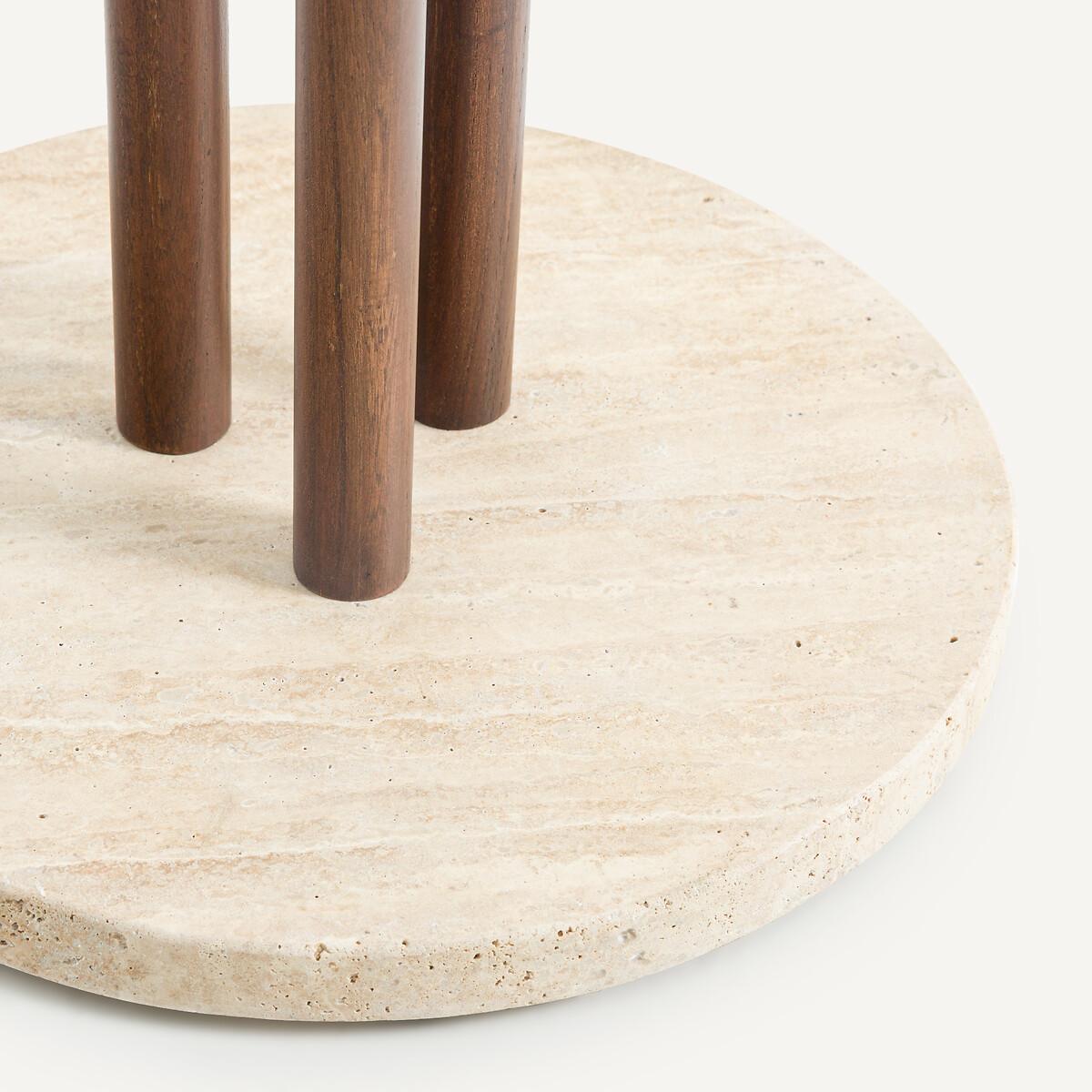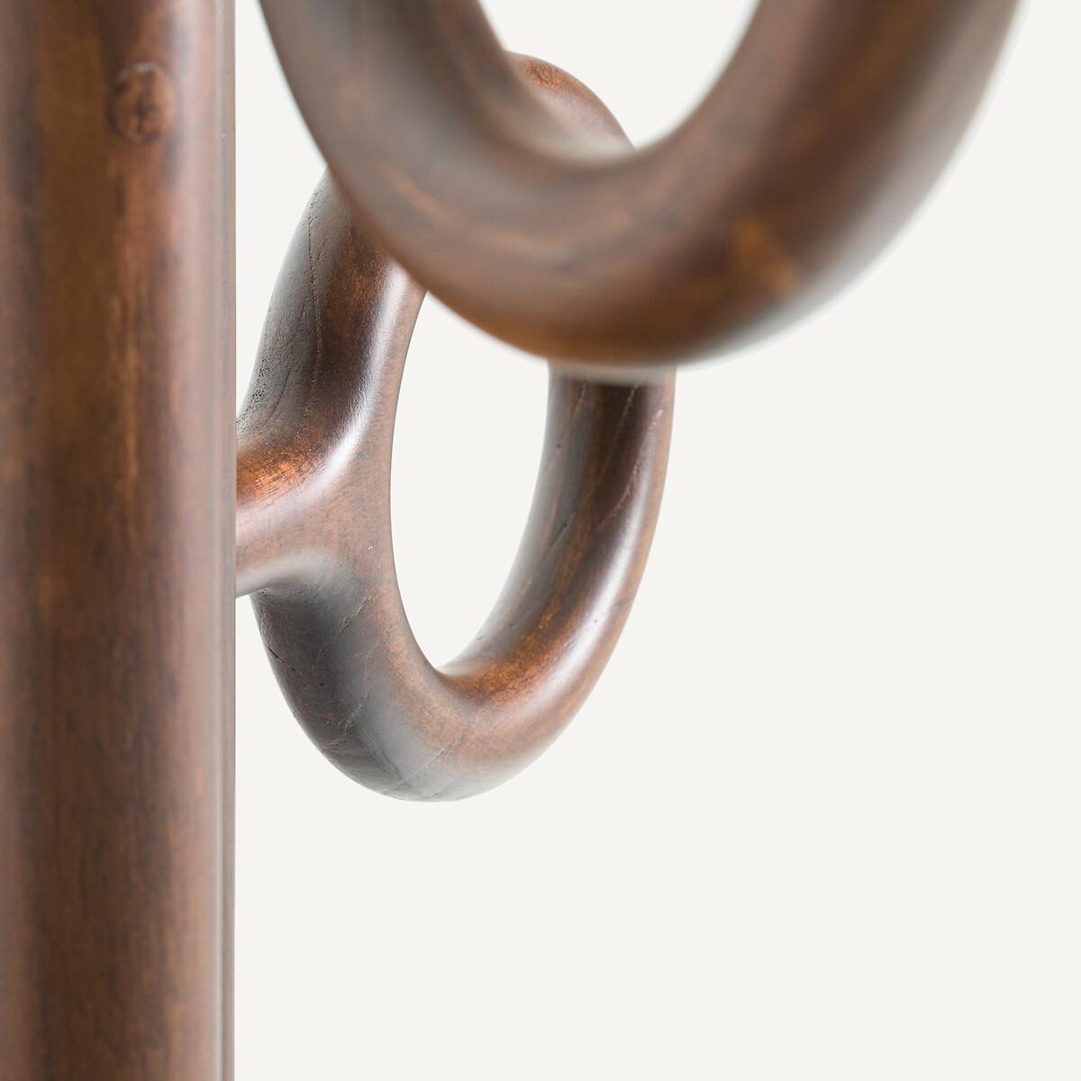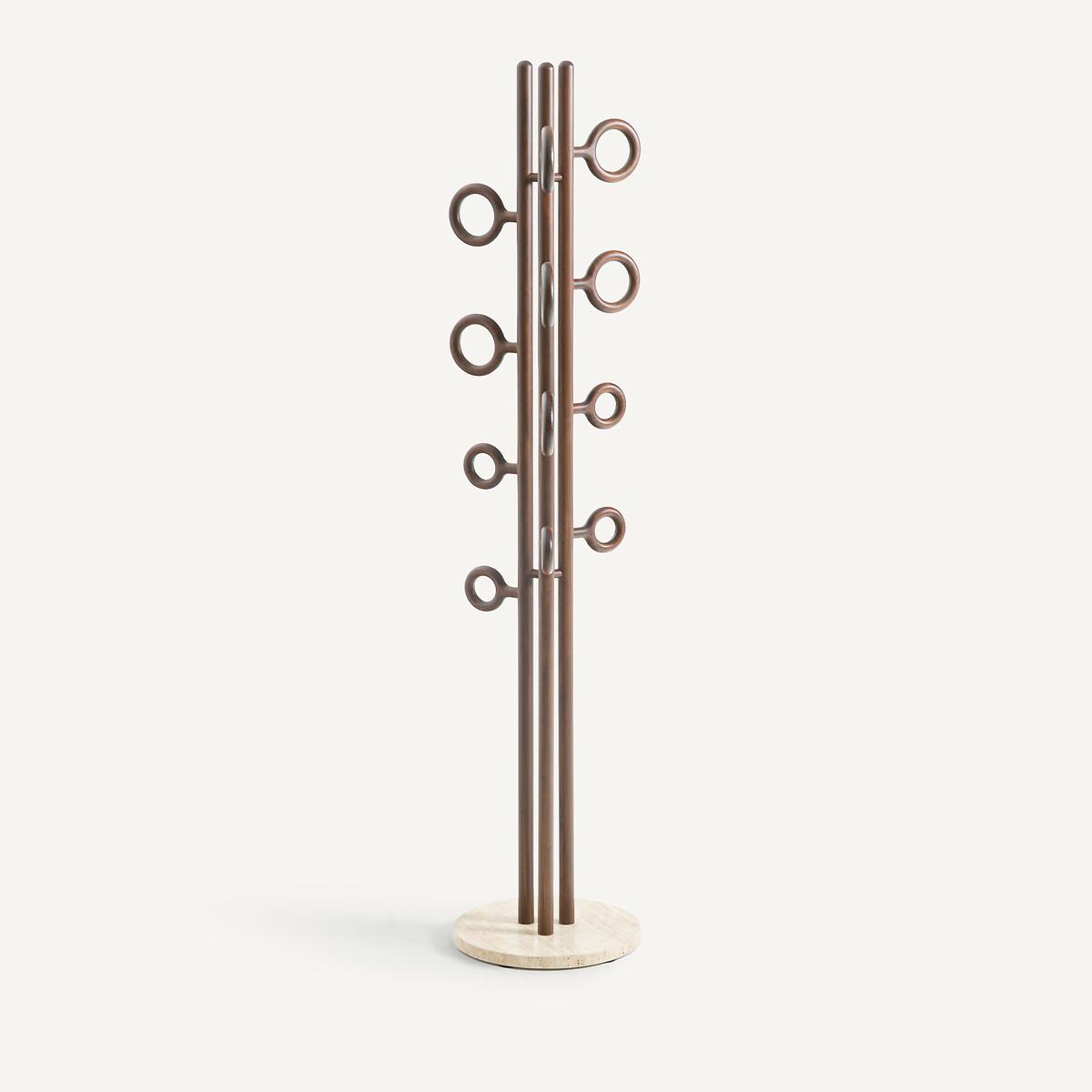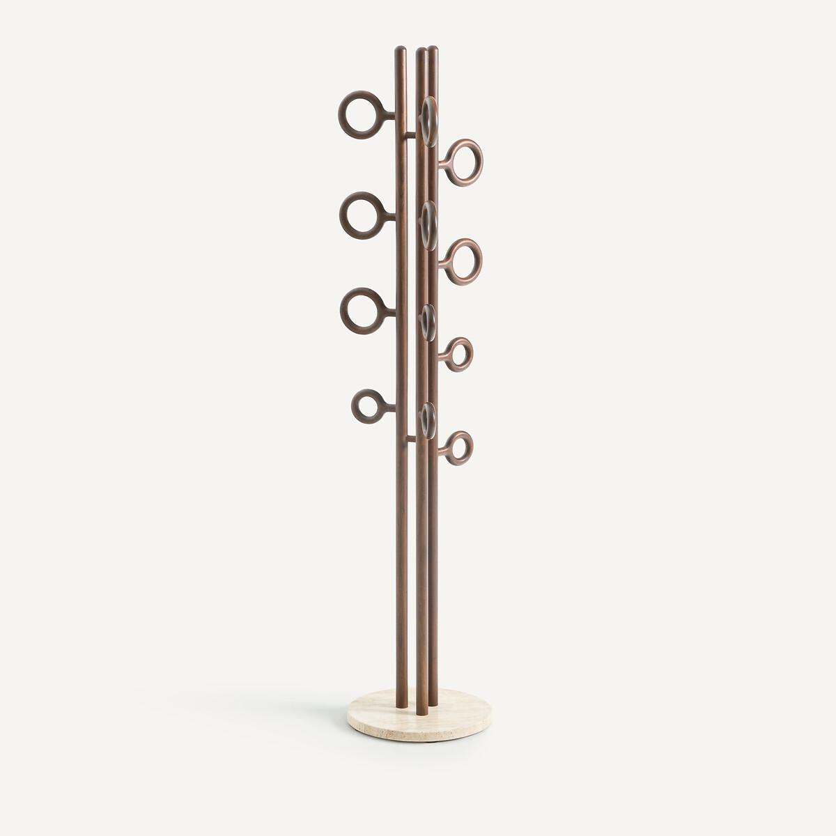 A sculptural object in its own right, the Nayati coat stand is made of walnut-stained solid elm and travertine. Inspired by the clear and refined line of Thonet chairs, Nayati is a decorative and functional piece with the AMPM signature. Product Details • 3 poles linked by 2 braces, 12 rings • Structure and rings in walnut-stained solid elm • FSC® certified wood • Nitrocellulose finish • Travertine base, each piece is unique. Quality Info • Wood is a living material. The differences in shades, grains and knots reinforce its character. Over time it may crack slightly. It is a natural process due to variations in temperature and humidity.. Care Advice • Travertine is a porous and heat sensitive material. Care information: Immediately wipe up any spilled liquid with a white cloth dipped in lukewarm water and wrung out. Dimensions • Diameter: 42cm • Height: 176cmDelivery:. Sold pre-assembled. Available for home delivery. Note! Please ensure all passageways and doorways are wide enough. Dimensions and weight of parcel1 parcel • W46 x H185 x D45cm, 25kg