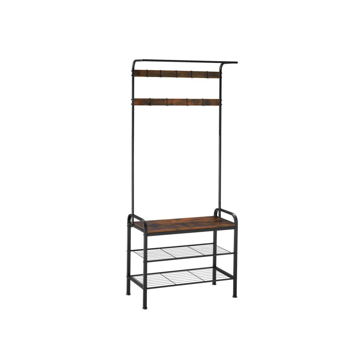 Slip comfortably into your shoes thanks to the coat and shoe rack from tectake. With nine removable hooks, two lattice shelves, a clothes rail, and a comfortable bench, it will help even large families create order out of hallway chaos. The perfect furniture for any home that needs to better organise, hooks and metal racks provide everything you need. The space-saving construction, stable metal frame, anti-tipping design and the adjustable screw feet make it a deeply practical design that works with coats with and without a hanger. This is highlighted by its industrial design with wood effect and powdered steel - get practical storage space in your hallway with the versatile coat rack from tectake.
