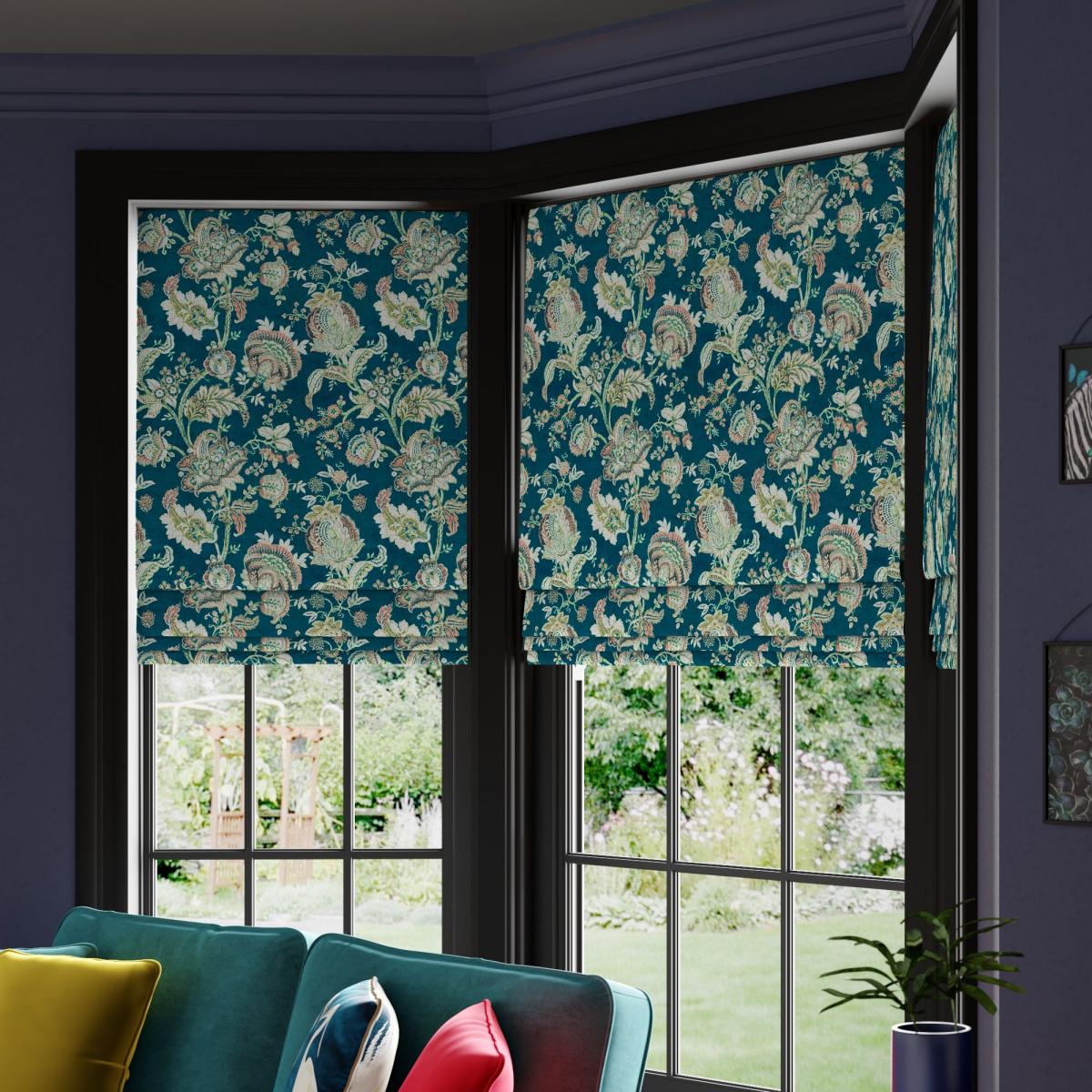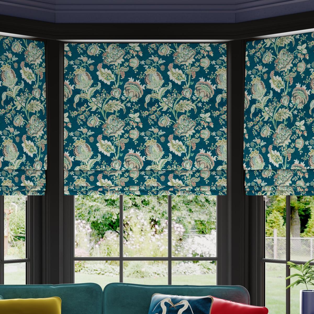 The Cobano Roman Blinds features an elegant, maximalist floral design printed on digitally printed velvet. A web exclusive design, you won't find this in stores! Choosing your lining: Choosing your fitting type:; Choosing which side you’d like the operating chain: Need help deciding or measuring? Book a free appointment with one of our consultants! Child Safety: We add clips to the back of our roman blinds to attach the cords to the fabric. They also double up as a child safety feature. If pressure is exerted the clips will detach to prevent the risk of strangulation. Please read our Blinds Safety Guide for more information. If the clips detach accidentally during normal use, they can be easily re-clipped back into place. Online Only: This product is only available to order online. Our expert virtual consultants can provide advice on measuring/fitting and style tips and our free samples can be ordered online to be delivered straight to your home to help you choose a fabric that's right for you. Once you're happy, simply place your order online and we'll do the rest.