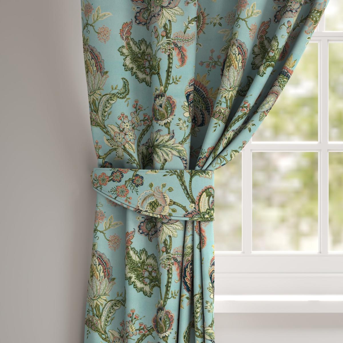 Crafted with a maximalist and elegant floral design, the Cobano Tieback will add a welcoming touch and pop of colour to your home, while neatly tucking away your curtain of choice. Pair this stylish tieback with our matching Made To Measure Curtain to give your home a beautifully co-ordinated finish. Online Only: This product is only available to order online. Our expert virtual consultants can provide advice on measuring/fitting and style tips and our free samples can be ordered online to be delivered straight to your home to help you choose a fabric that's right for you. Once you're happy, simply place your order online and we'll do the rest.