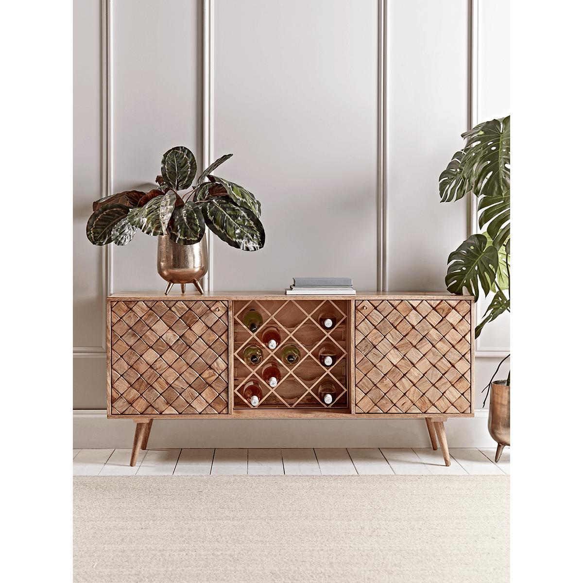 I love this piece because of its versatile design and warm, textured finish, making it a great addition to both modern and classic interiors. It works particularly well in living rooms or dining areas where it can serve as extra storage without feeling bulky. For styling, consider placing a mix of decorative objects like vases, books, or framed photos on top to keep it practical yet inviting. To enhance its character, pair it with softer textiles or greenery nearby - the two plants in the image demonstrate how it can seamlessly integrate into a natural or neutral palette. Its compact size means it’s ideal for smaller spaces or as a statement piece in an open-plan setting.