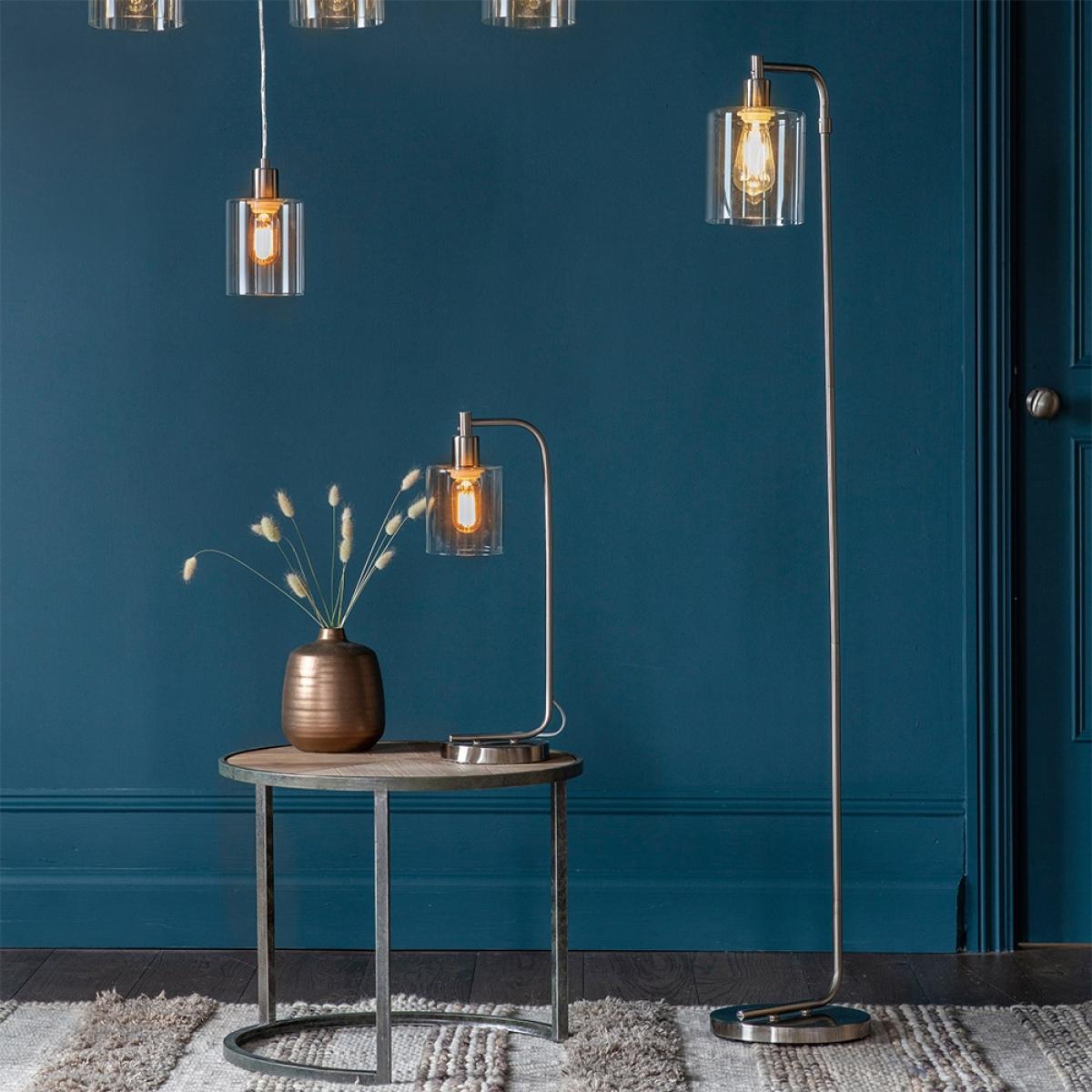 The contemporary Cobisa Floor Lamp is a lavish industrial lamp that will add cool elegance to your home. Perfect for those who love bold decorative décor. Featuring a tall robust steel stand, with a beautifully shaped glass shade perfect for lighting up your statement armchairs and sofas; maybe with a morning cuppa or even a cheeky cocktail in hand. Whether to enjoy an afternoon of reading, writing or even catching up with friends. Stress no more, dark corners will be a thing of the past! Pair with a matching table lamp and accessories to complete that on-trend industrial look.