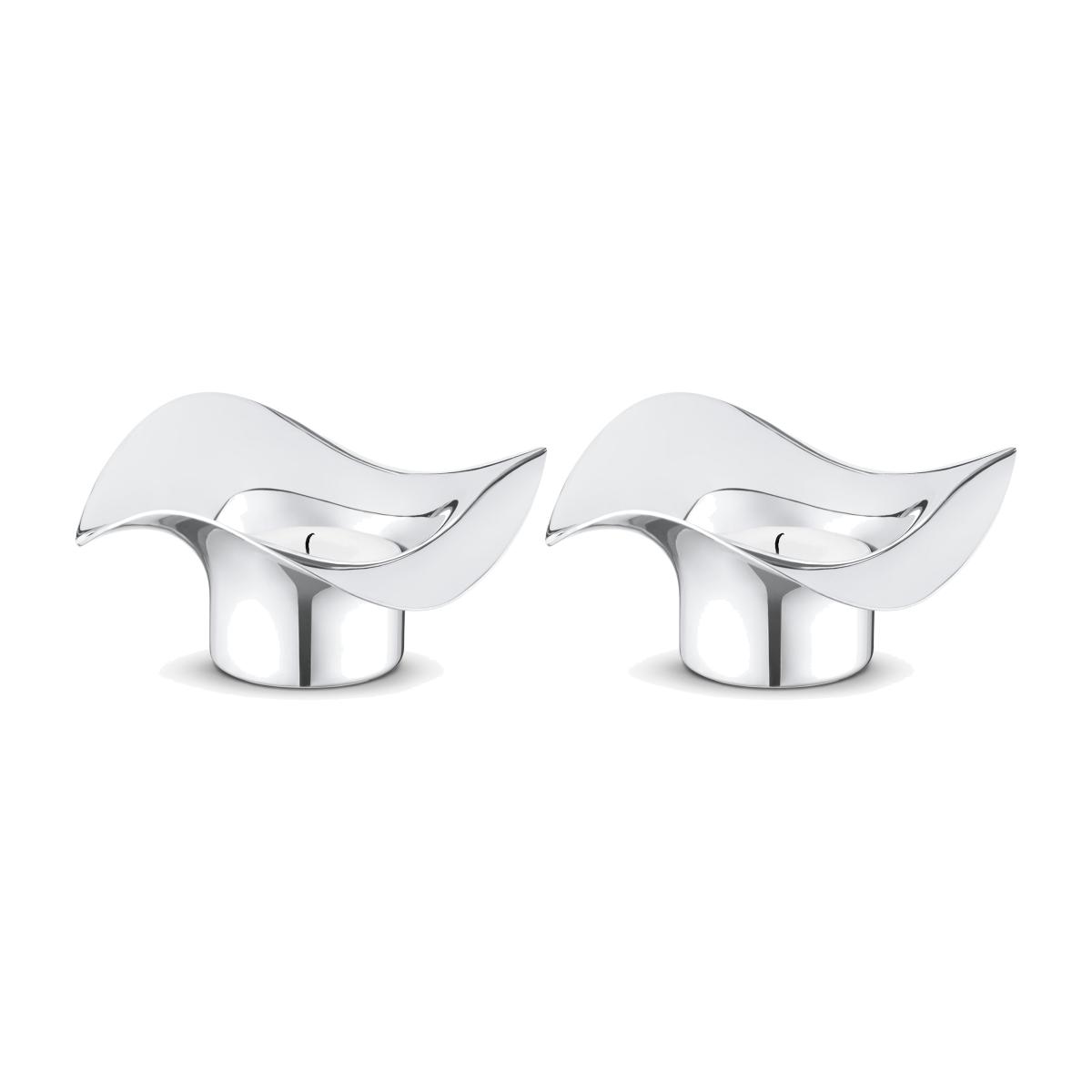 Georg Jensen's Cobra candle holder will give your dinner table a feeling of true elegance, reminiscent of the classic luxury of oakwood with its strong, modern design. The candle holders were designed by Constantin Wortmann and feature distinctive rolling shapes. The Cobra is one of Georg Jensen's most popular series, and this great 2-pack will fit into all kinds of environments and decors. They can also be combined with other Cobra candle holders for a dynamic atmosphere.