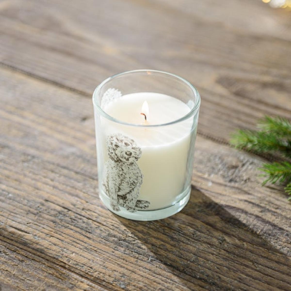* Cute Cockapoo dog design * Fresh linen scent * Up to 40 hour burn time Add a fresh scent to your home with this delightful Cockapoo Candle, complete with a wooden lid. Enjoy its crisp Linen fragrance, where jasmine petals mingle with dewy green notes. Soft musks and white woods float on the base, creating a truly inviting aroma. With a 40-hour burn time, this candle promises long lasting freshness.