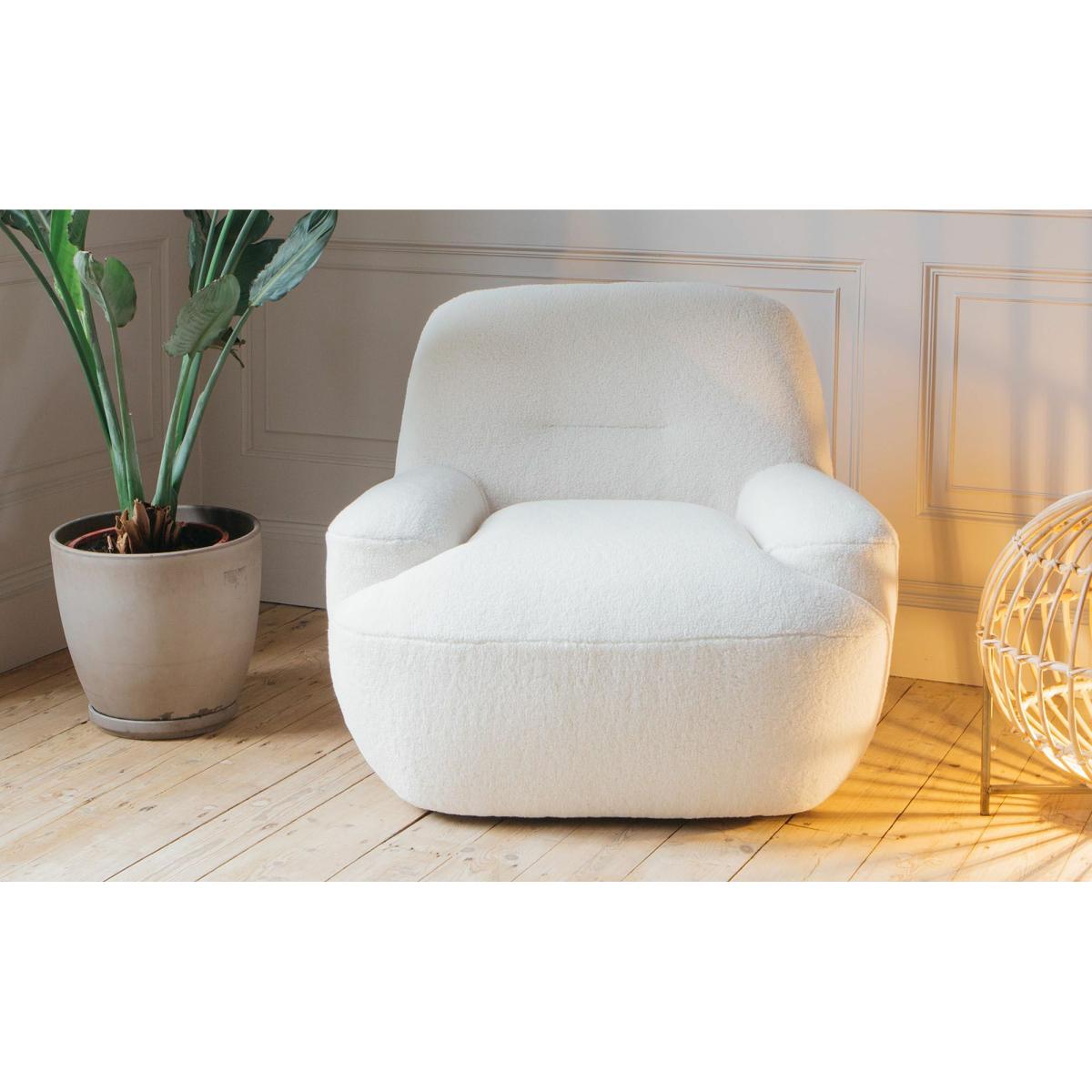 I love this armchair for its approachable shape and neutral tone, making it a versatile addition to many interiors. It works particularly well in contemporary, Scandinavian, or minimalist schemes due to its soft curves and understated design. To style it effectively, consider pairing it with a textured throw or a patterned cushion for added visual interest. It's also great as a statement piece in a corner or as part of a cosy reading nook. Given its soft tone, it’s easy to combine with both bold colours and muted palettes, making it a flexible choice for many spaces.