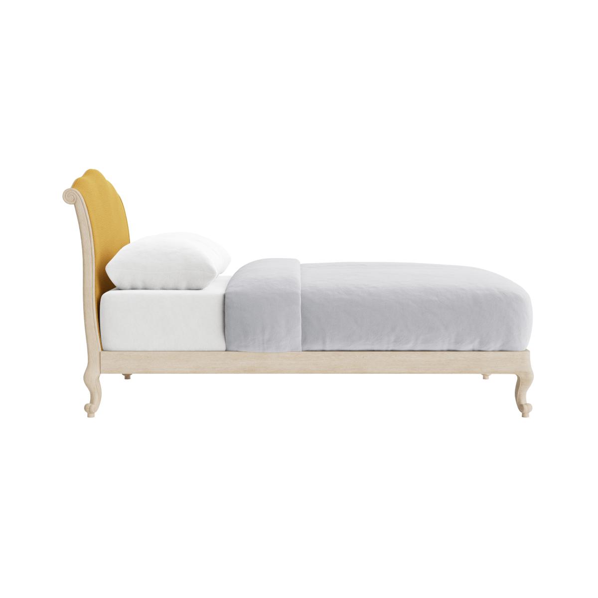 I love the Coco Bed for its elegant yet versatile design, making it adaptable across a range of interiors. Its classic silhouette works wonderfully in romantic, vintage-inspired schemes, but can also balance well in modern, minimalist spaces when paired with crisp linens and contemporary accessories. The mustard upholstered headboard adds a wonderful pop of colour and texture, creating a cosy focal point. Styling tips include layering with neutral bedding for a calm look or introducing colourful throws and cushions to add personality. To keep the overall vibe fresh, consider pairing it with antique side tables or sleek, modern lamps for a harmonious mix of styles.