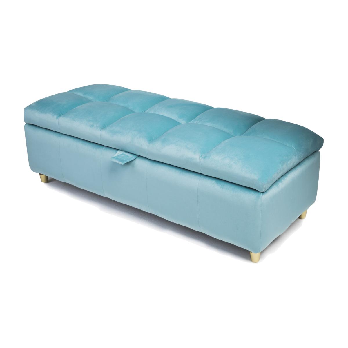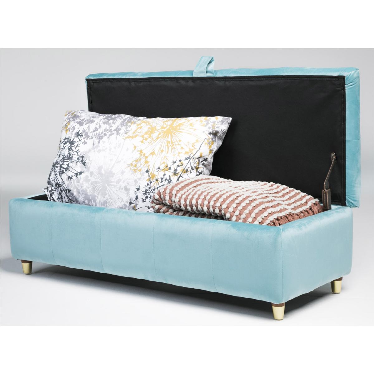 The Coco storage bench offers a simplistic yet modern design. It is upholstered in a suede type fabric which provides a luxurious feel at an affordable price. With the thick padded lid the bench supplies a comfortable extra seat. The bench includes hidden storage which can be revealed by simply lifting the lid at the longest side using the attached handle. The storage space is as big as the bench itself, providing a perfect area to store cushions, sheets, towels, toys, shoes etc in any room of the house. It is an ideal space-saving option that additionally looks aesthetically pleasing. The bench is available in 4 colours light blue, pink, grey and emerald.