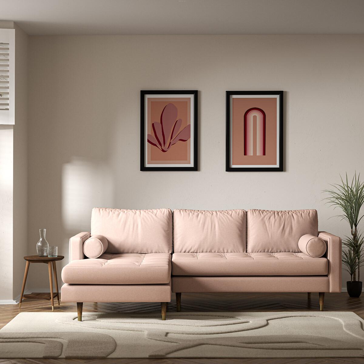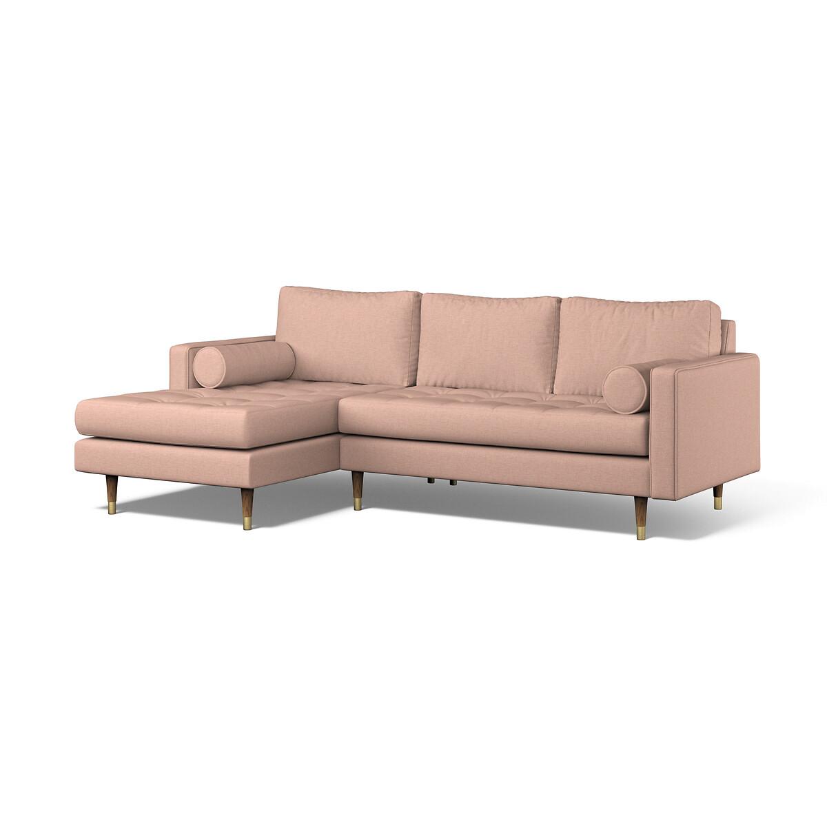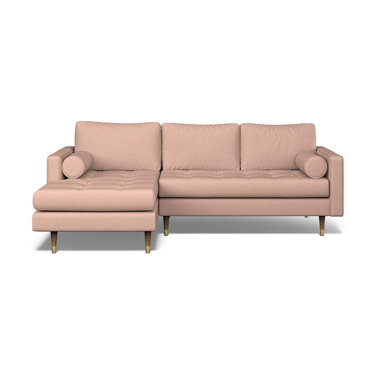 Put your feet up and S-T-R-E-T-C-H. With its cool buttoned seats and elegant low back the Coco is the epitome of 1950’s glamour. Throw in some rounded bolster cushions and brass tipped feet and you have the ultimate in Mid-century modern style. Decadent, opulent, vintage perfection with a Hollywood twist. Choose from our soft brushed fabric for ultimate cosiness or velvet for luxe living. The Coco is available as a 2 seater,3 seater, corner chaise sofa (both left facing and right facing) or armchair. Product details• Soft Brushed - A cosy and practical flat woven fabric featuring a subtle brushed handle for a superbly snuggly seat. Check it's right for you - order a FREE swatch above.• Created with medium density foam fillings for a sofa with a level of comfort suitable for most. • A foam filled seat with button detailing provides a sturdy and supportive seat• Fibre backs provide extra softness and give you that "sink in" feeling.• Two round bolster scatter cushions with piped edges add extra arm comfort and the perfect retro touch.• Just flip to freshen up - both the seat cushions and back cushions are fully reversible so it's easy to keep your sofa looking its best.• The back cushion covers are removable (zip fastening). The seat cushion is not removable due to button finishes. • FSC® solid beech hardwood frame - made of wood from responsibly managed forests that provide environmental, social and economic benefits.• Tapered feet crafted entirely from solid wood ensure durability and stability.• Removable feet.• Lovingly handmade in the UK.All our made to order sofas are carefully manufactured in the UK.Each hardwood frame is dowelled, glued, and screwed before being paired with the finest fabrics and fillings. And it doesn't stop there - for customer peace of mind and safety, all frames and fabrics are rigorously examined, inspected, and tested to the highest standards. All filling material(s) and covering fabric(s) meet the requirements for resistance to cigarette and match ignition in the 1988 safety regulations. This sofa comes with a 3 year manufacturer warranty from date of delivery (subject to terms and conditions)Product composition• Fabric - Soft Brushed (100% polyester)• Seat Fillings - Foam (Dacron wrapped)• Back Fillings - Fibre• Frame - Beech Hardwood (FSC), OSB (UK origin, FSC)• Feet - Solid Wood. Product Dimensions Overall width: 270 cm. Overall depth: 92/180 cm. Overall height: 90 cm. Seat height: 48 cm. Seat depth: 57 cm. Seat width between the arms: 249 cm. Back height (from base): 71 cm. Back height (from seat): 45 cm. Arm height (from floor): 66 cm. Arm height (from seat): 18 cm Clearance to floor (leg height): 19 cm. Small bolster cushions x 2: L24 cm x W17 cm. Please remember to measure your available space before ordering to be sure your sofa will fit. Don't forget to measure accessways and corners, and consider any obstacles. Package DimensionsL18. 1 cm x W151 cm x H73 cm, Weight 86 kg. This product will be dispatched by one of our trusted suppliers. You’ll be contacted by their selected courier about your delivery. Your product will be delivered to your room of choice. Feet may be assembled on arrival. BELFI01