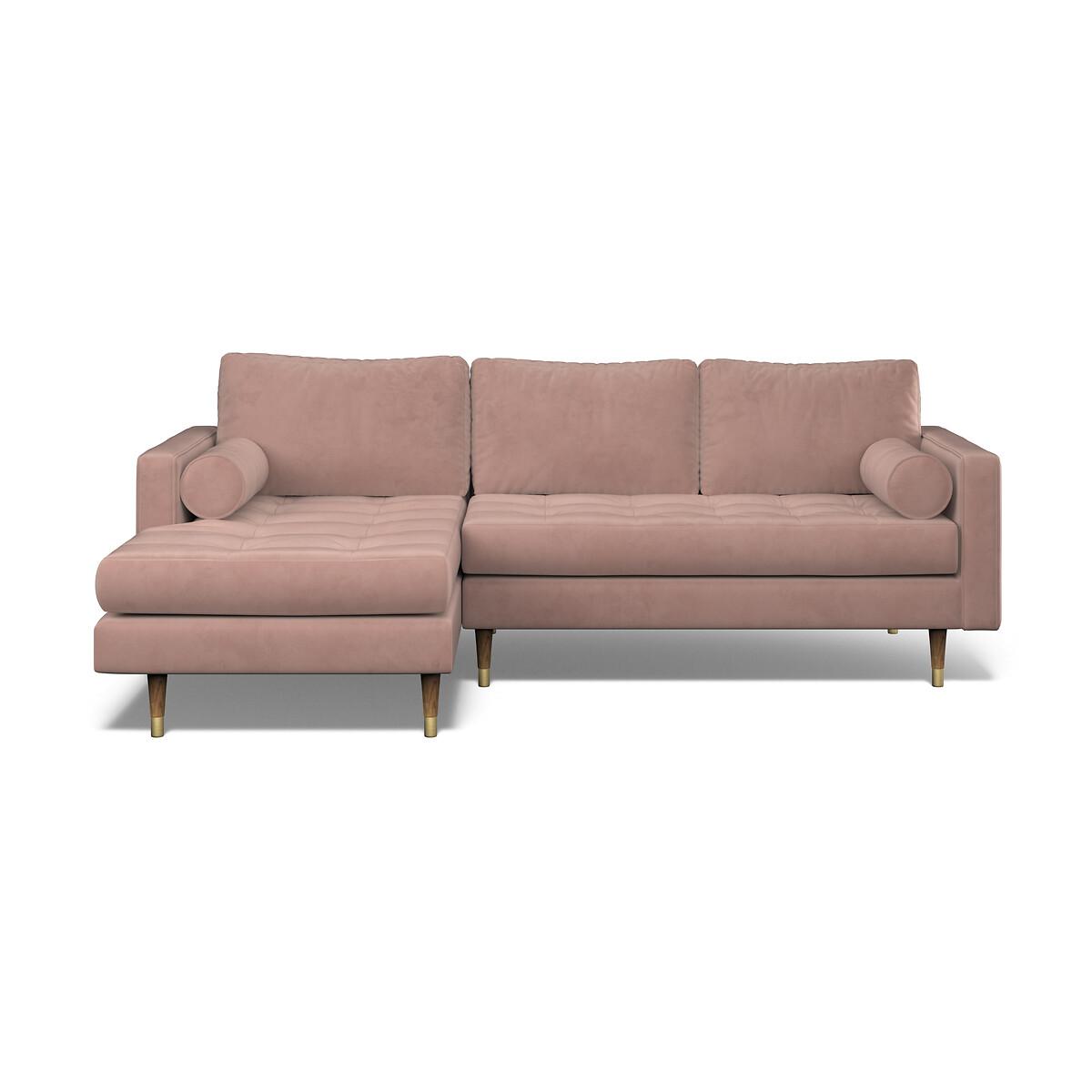 Put your feet up and S-T-R-E-T-C-H. With its cool buttoned seats and elegant low back the Coco is the epitome of 1950’s glamour. Throw in some rounded bolster cushions and brass tipped feet and you have the ultimate in Mid-century modern style. Decadent, opulent, vintage perfection with a Hollywood twist. Choose from our soft brushed fabric for ultimate cosiness or velvet for luxe living. The Coco is available as a 2 seater,3 seater, corner chaise sofa (both left facing and right facing) or armchair. Product details• Velvet - An elegant velvet with a dense and matte finish, perfect for those wanting a rich and luxurious look. A flat finish pile makes it difficult for the material to snag – ideal if you live with pets and sure to prove durable for years to come. Check it's right for you - order a FREE swatch above.• Created with medium density foam fillings for a sofa with a level of comfort suitable for most. • A foam filled seat with button detailing provides a sturdy and supportive seat• Fibre backs provide extra softness and give you that "sink in" feeling.• Two round bolster scatter cushions with piped edges add extra arm comfort and the perfect retro touch.• Just flip to freshen up - both the seat cushions and back cushions are fully reversible so it's easy to keep your sofa looking its best.• The back cushion covers are removable (zip fastening). The seat cushion is not removable due to button finishes. • FSC® solid beech hardwood frame - made of wood from responsibly managed forests that provide environmental, social and economic benefits.• Tapered feet crafted entirely from solid wood ensure durability and stability.• Removable feet.• Lovingly handmade in the UK.All our made to order sofas are carefully manufactured in the UK.Each hardwood frame is dowelled, glued, and screwed before being paired with the finest fabrics and fillings. And it doesn't stop there - for customer peace of mind and safety, all frames and fabrics are rigorously examined, inspected, and tested to the highest standards. All filling material(s) and covering fabric(s) meet the requirements for resistance to cigarette and match ignition in the 1988 safety regulations. This sofa comes with a 3 year manufacturer warranty from date of delivery (subject to terms and conditions)Product composition• Fabric - Velvet (100% polyester)• Seat Fillings - Foam (Dacron wrapped)• Back Fillings - Fibre• Frame - Beech Hardwood (FSC), OSB (UK origin, FSC)• Feet - Solid Wood. Product Dimensions Overall width: 270 cm. Overall depth: 92/180 cm. Overall height: 90 cm. Seat height: 48 cm. Seat depth: 57 cm. Seat width between the arms: 249 cm. Back height (from base): 71 cm. Back height (from seat): 45 cm. Arm height (from floor): 66 cm. Arm height (from seat): 18 cm Clearance to floor (leg height): 19 cm. Small bolster cushions x 2: L24 cm x W17 cm. Please remember to measure your available space before ordering to be sure your sofa will fit. Don't forget to measure accessways and corners, and consider any obstacles. Package DimensionsL18. 1 cm x W151 cm x H73 cm, Weight 86 kg. This product will be dispatched by one of our trusted suppliers. You’ll be contacted by their selected courier about your delivery. Your product will be delivered to your room of choice. Feet may be assembled on arrival. BELFI01