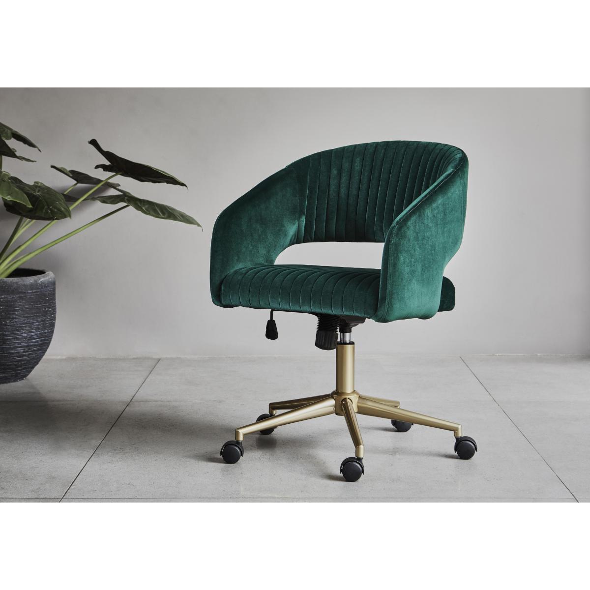 The Coco swivel office chair has all the functionality and comfort of an office chair, but with attractive detailing and upholstery more typical of an accent chair. In tactile velvet in a choice of colours. This is a self-assembly item. Why you'll love it. Superbly stylish velvet office chair. In tactile velvet in a choice of beautiful colours. Fashionably fluted seat and back. Cushioned for comfort, curved so it hugs your back. Height adjustable with an easy gas-lift mechanism. Star shaped swivel base. On castors, so it's easy to move around. Fantastic value price. 12 month guarantee. What you’ll need to know. Iron and plywood chair frame and legs. Strong base on five castors. Polyester velvet upholstery. Foam filled seat. Some fabrics can show wear on areas of more use or in direct sunlight. Please read our. Upholstery care guide. For more advice. Requires minimal self-assembly.