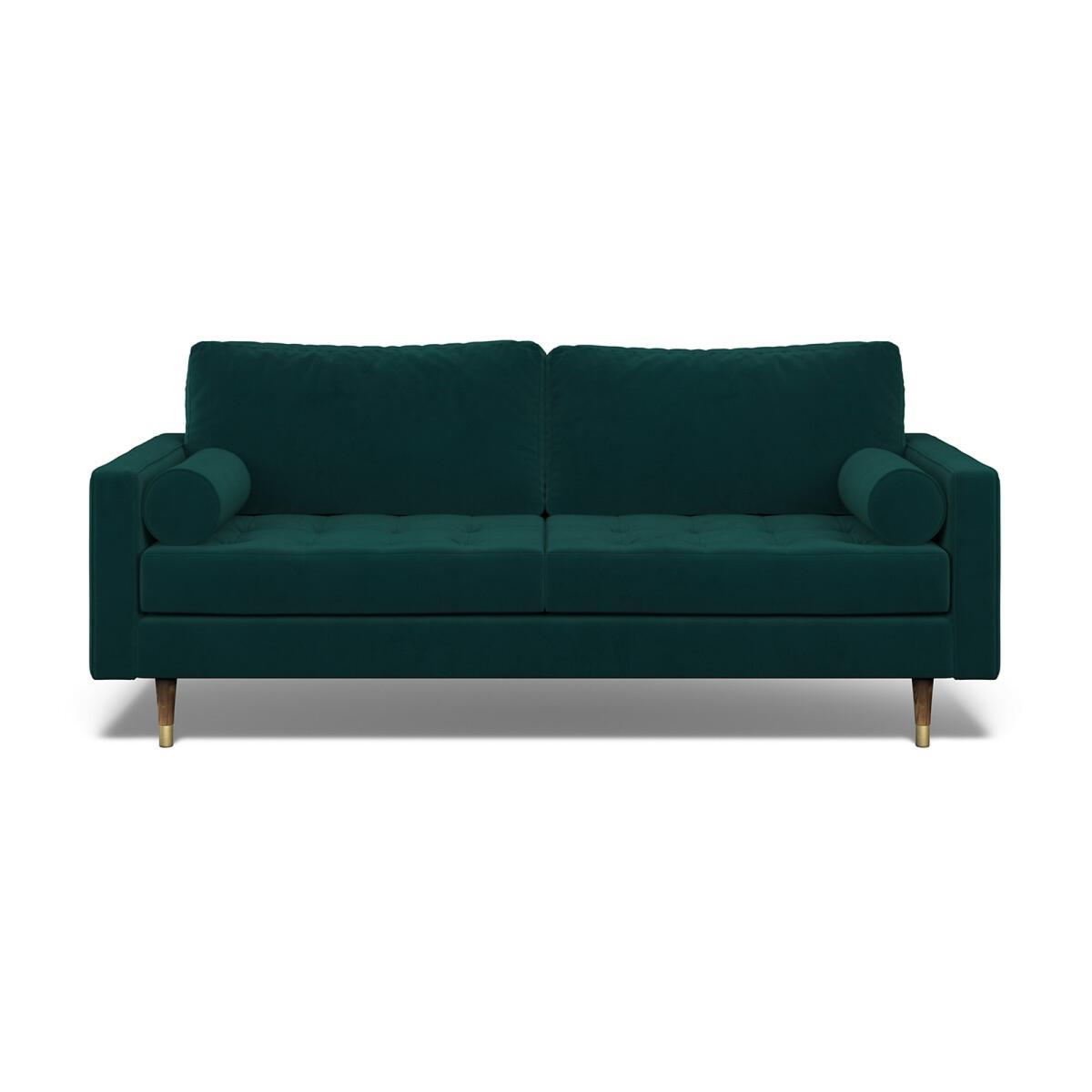 With its cool buttoned seats, elegant low back and metal capped legs – the Coco screams 1950’s glamour. Throw in some curvy bolster cushions and you have the ultimate in vintage style. Choose from our soft brushed fabric for ultimate coziness or velvet for luxe living. All made to order sofas are carefully manufactured in the UK.Each hardwood frame is dowelled, glued, and screwed before being paired with the finest fabrics and fillings. And it doesn't stop there - for customer peace of mind and safety, all frames and fabrics are rigorously examined, inspected, and tested to the highest standards. Product Specifications:. Product Dimensions: H 90cm x W 211cm x D 92cm. Fabric: Velvet - 100% Polyester. Feet: Walnut Packaged Dimensions: 210cmx91cmx73 - Please remember to measure your available space before ordering. The Rosa Range is also available in Velvet & Soft Brushed in a variety of colours. This product will be dispatched by one of our trusted suppliers. You’ll be contacted by their selected courier about your delivery. Your product will be delivered to your room of Choice. The feet for the product will be assembled once delivered.