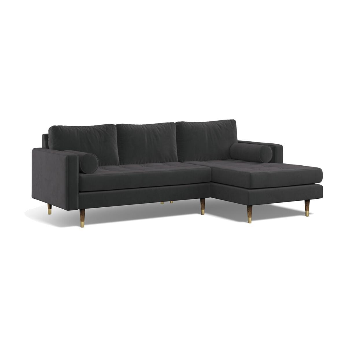 Coco Velvet Chaise - Right Facing with Walnut Legs