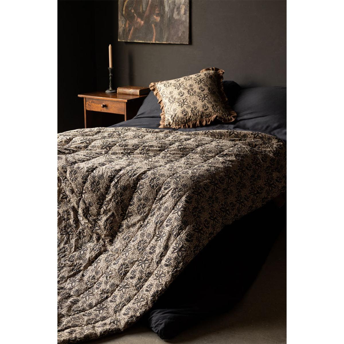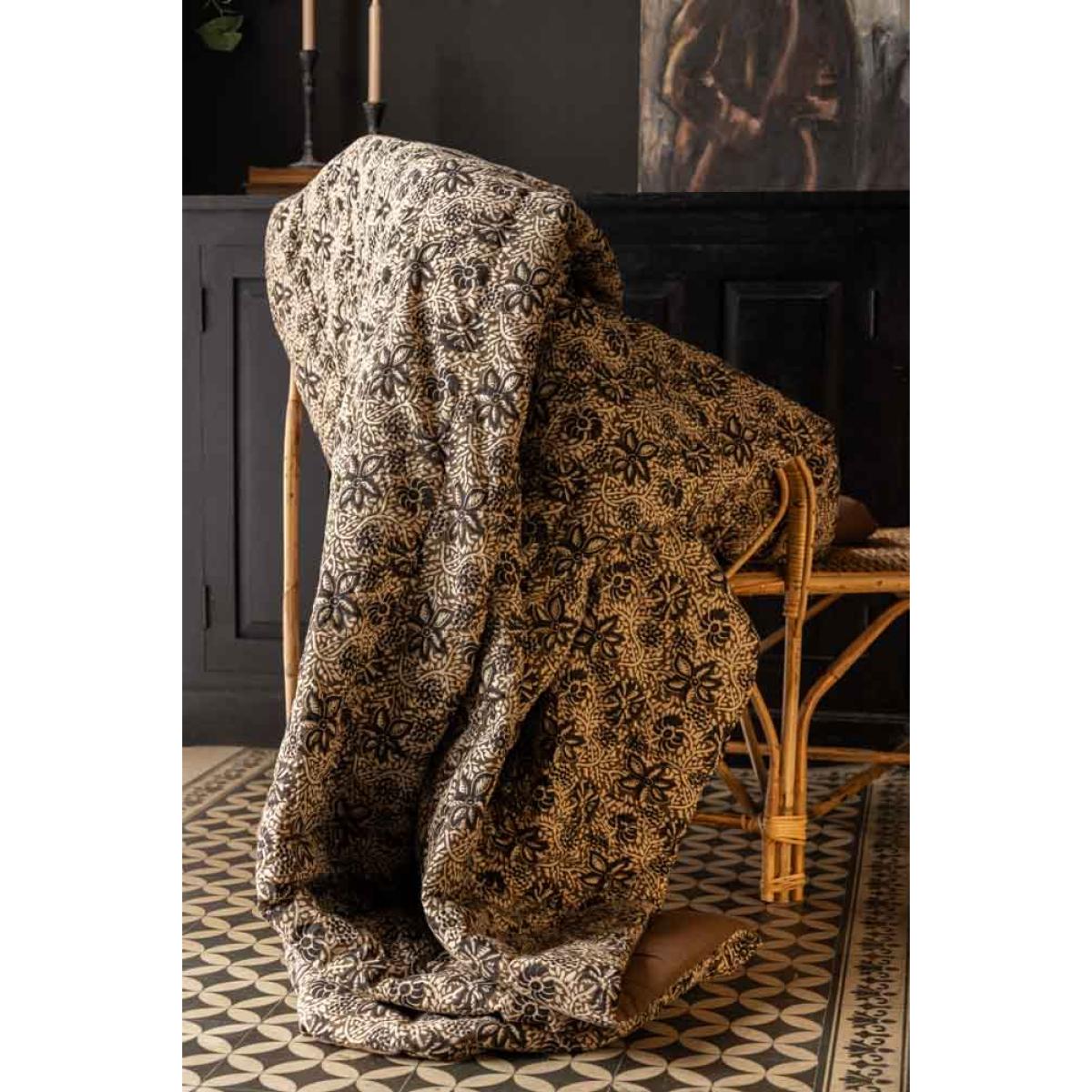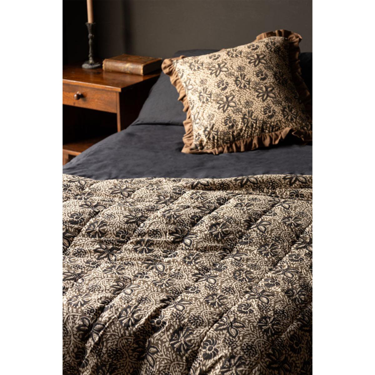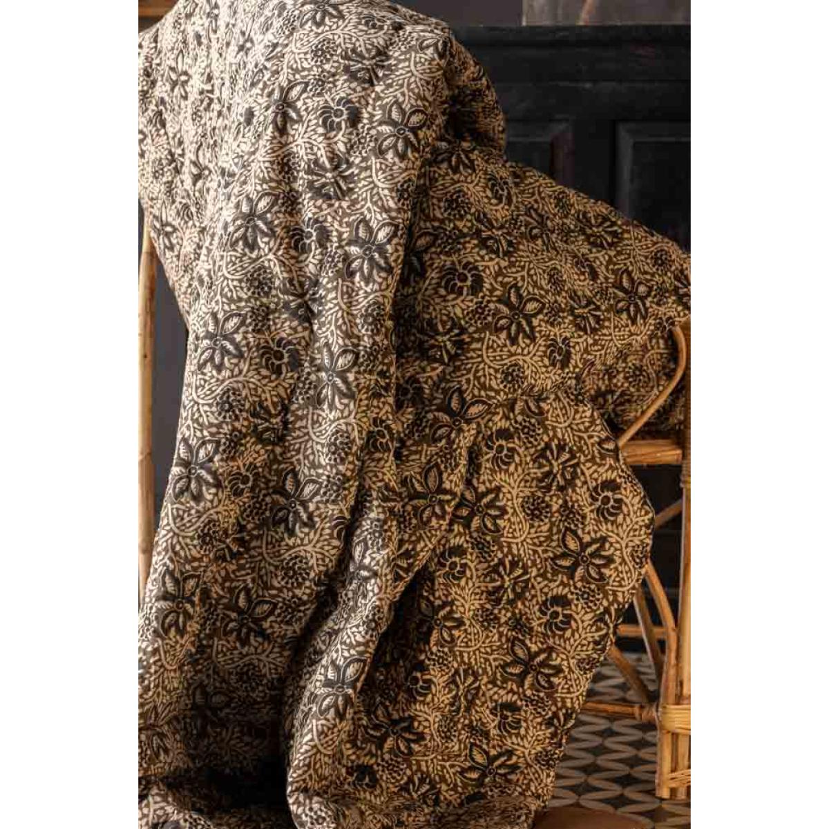 <!--td -- > Transform your living space into a serene retreat with the Cocoa Floral Quilt In King-Size. This beautiful quilt features a khaki floral pattern accented with subtle black details, creating an ethereal blend of nature-inspired elegance. The reverse side showcases a warm, earthy brown tone, adding versatility to your décor. Ideal for neutral and earthy interior styles, this quilt will bring a touch of welcomed tranquillity to your bedroom or living room. Wherever you decide to put this quilt, it promises to help you embrace the soothing charm of nature whilst creating a peaceful and stylish setting filled with serenity. - Cocoa Floral Quilt In King-Size - Measures: 250cm x 220cm - Material: Cotton Slub