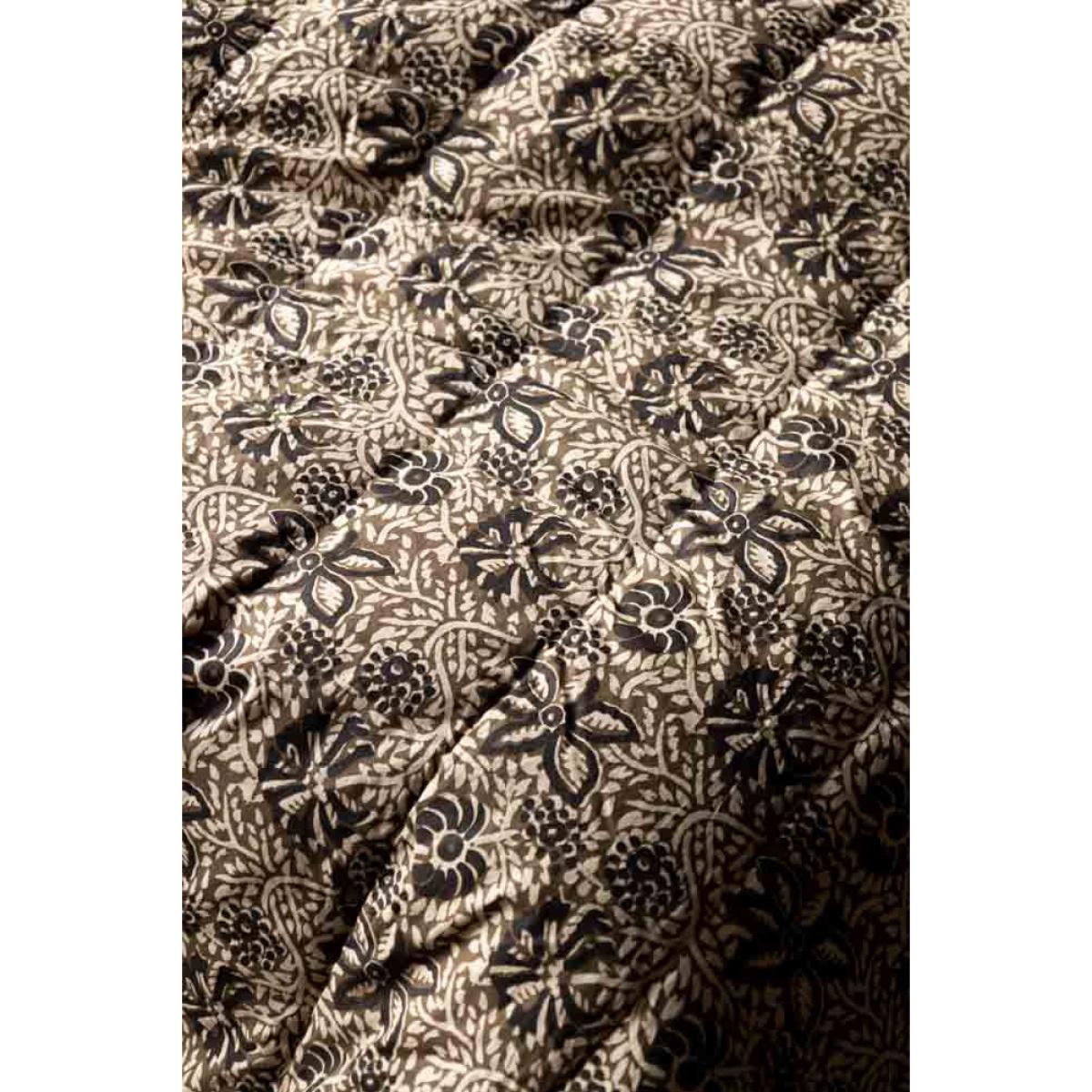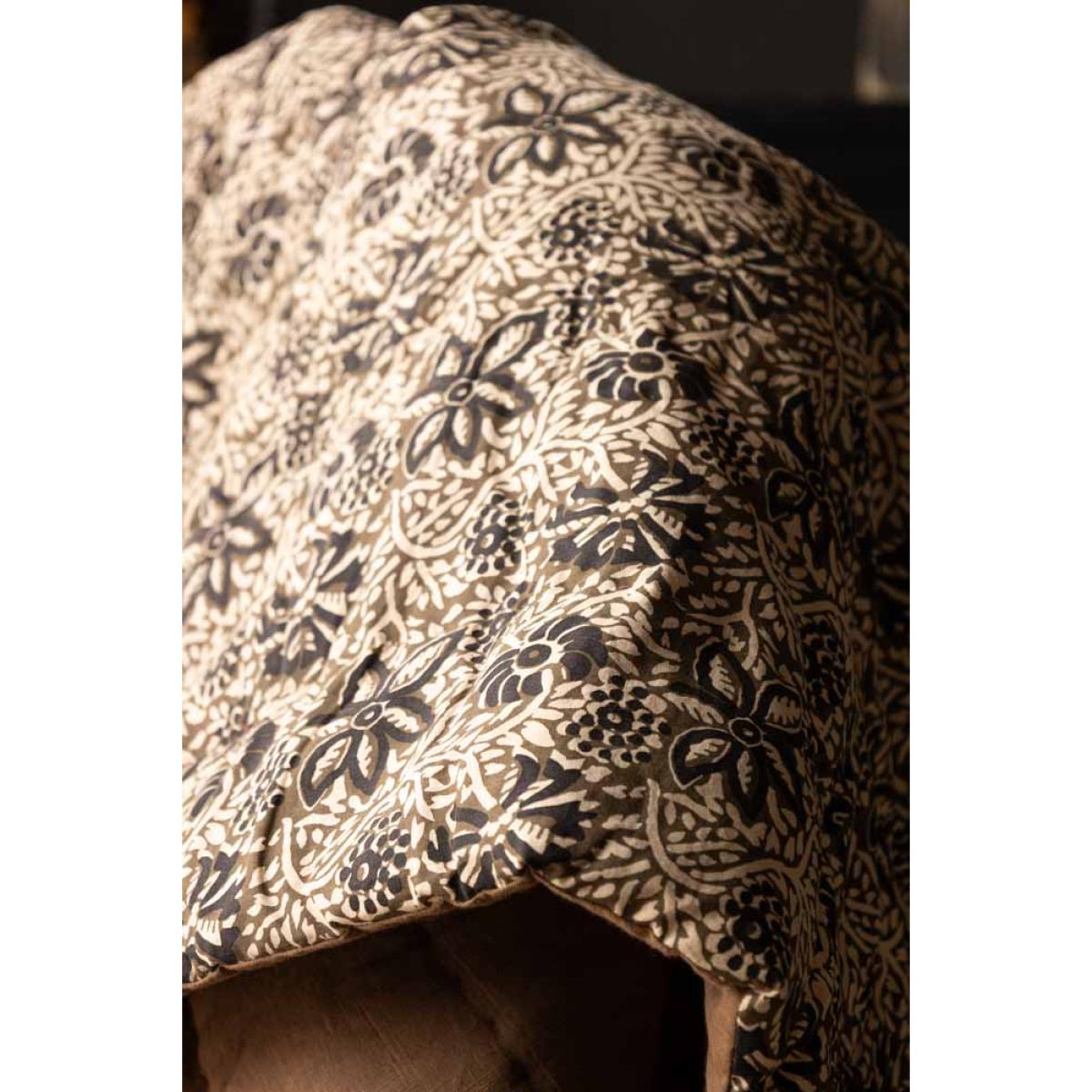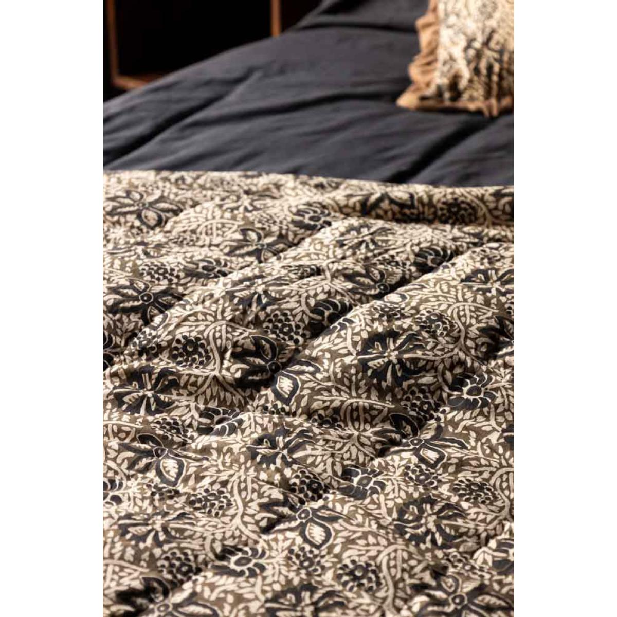 <!--td -- > Transform your living space into a serene retreat with the Cocoa Floral Quilt In King-Size. This beautiful quilt features a khaki floral pattern accented with subtle black details, creating an ethereal blend of nature-inspired elegance. The reverse side showcases a warm, earthy brown tone, adding versatility to your décor. Ideal for neutral and earthy interior styles, this quilt will bring a touch of welcomed tranquillity to your bedroom or living room. Wherever you decide to put this quilt, it promises to help you embrace the soothing charm of nature whilst creating a peaceful and stylish setting filled with serenity. - Cocoa Floral Quilt In King-Size - Measures: 250cm x 220cm - Material: Cotton Slub