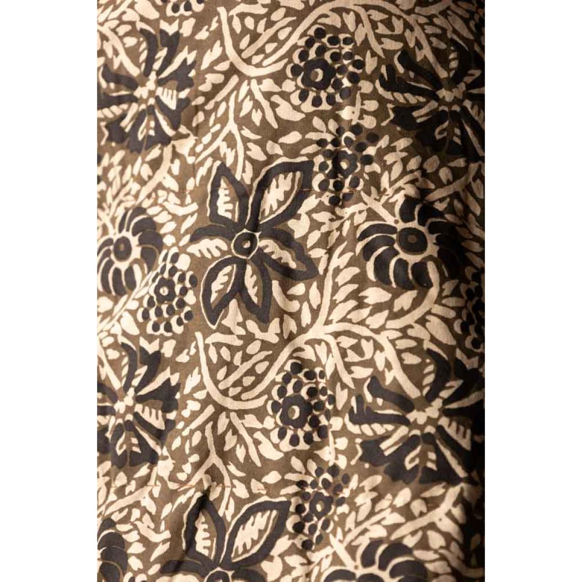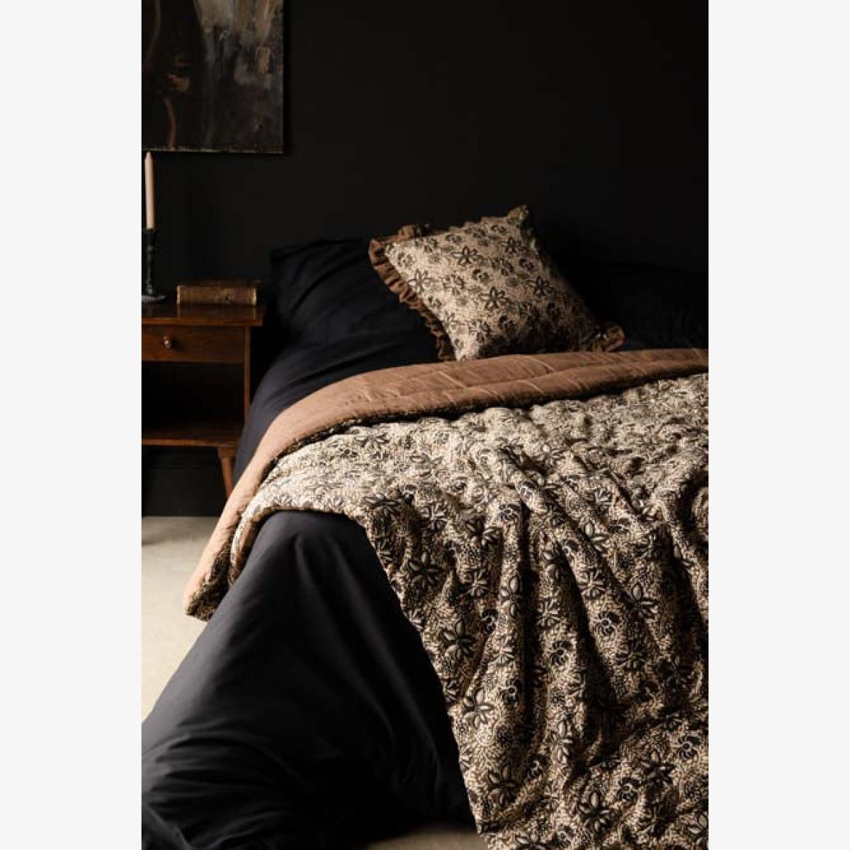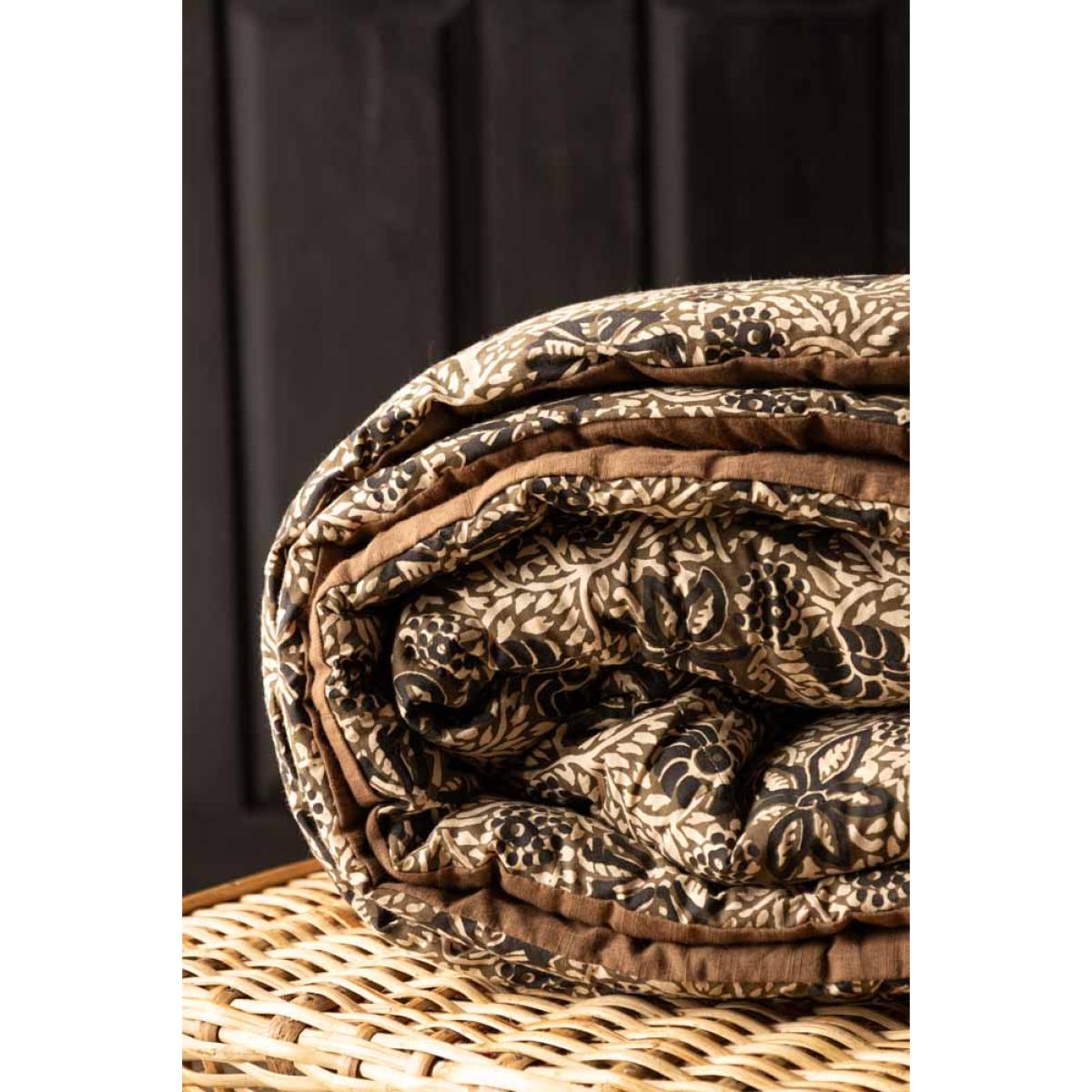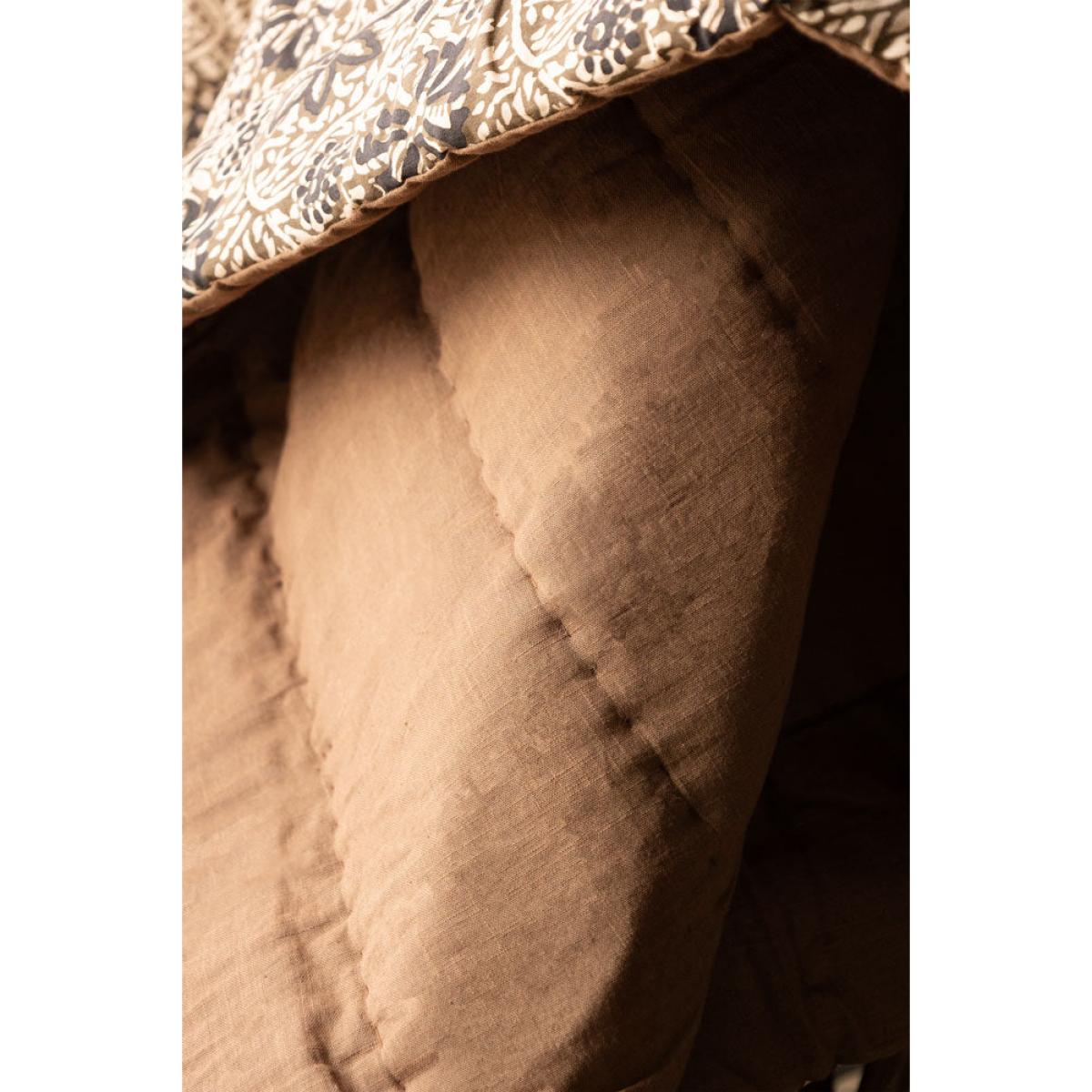 <!--td -- > Transform your living space into a serene retreat with the Cocoa Floral Quilt In King-Size. This beautiful quilt features a khaki floral pattern accented with subtle black details, creating an ethereal blend of nature-inspired elegance. The reverse side showcases a warm, earthy brown tone, adding versatility to your décor. Ideal for neutral and earthy interior styles, this quilt will bring a touch of welcomed tranquillity to your bedroom or living room. Wherever you decide to put this quilt, it promises to help you embrace the soothing charm of nature whilst creating a peaceful and stylish setting filled with serenity. - Cocoa Floral Quilt In King-Size - Measures: 250cm x 220cm - Material: Cotton Slub
