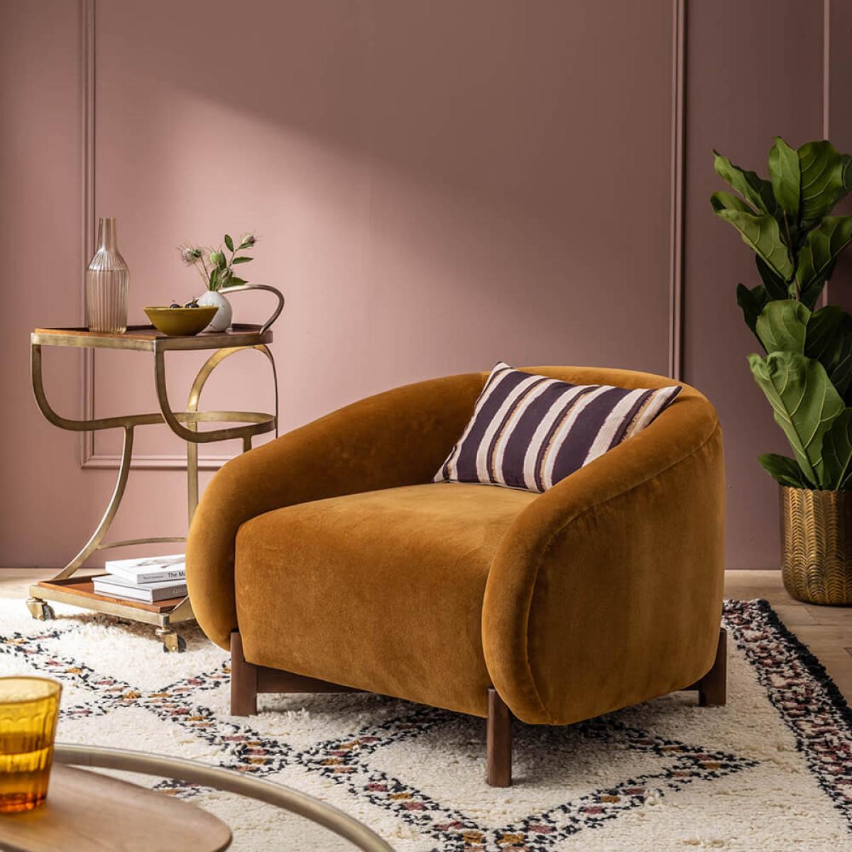 Velvet has long been synonymous with luxury, harking back to a bygone era when it was favoured by the nobility for its opulent look and feel, and it’s enjoyed something of a resurgence of late. Our Cocoon armchair is a fabulous case in point, upholstered in on-trend mustard-coloured velvet and featuring a sweeping curved silhouette with solid wooden legs. Sitting low to the ground, it’s got fixed back and seat support for cradling your body in all the right ways, while its cushioning offers a medium to firm sit. Top tip: why not pair your comfy velvet armchair with our Birdie drinks trolley to create the ultimate set-up for cocktail hour?