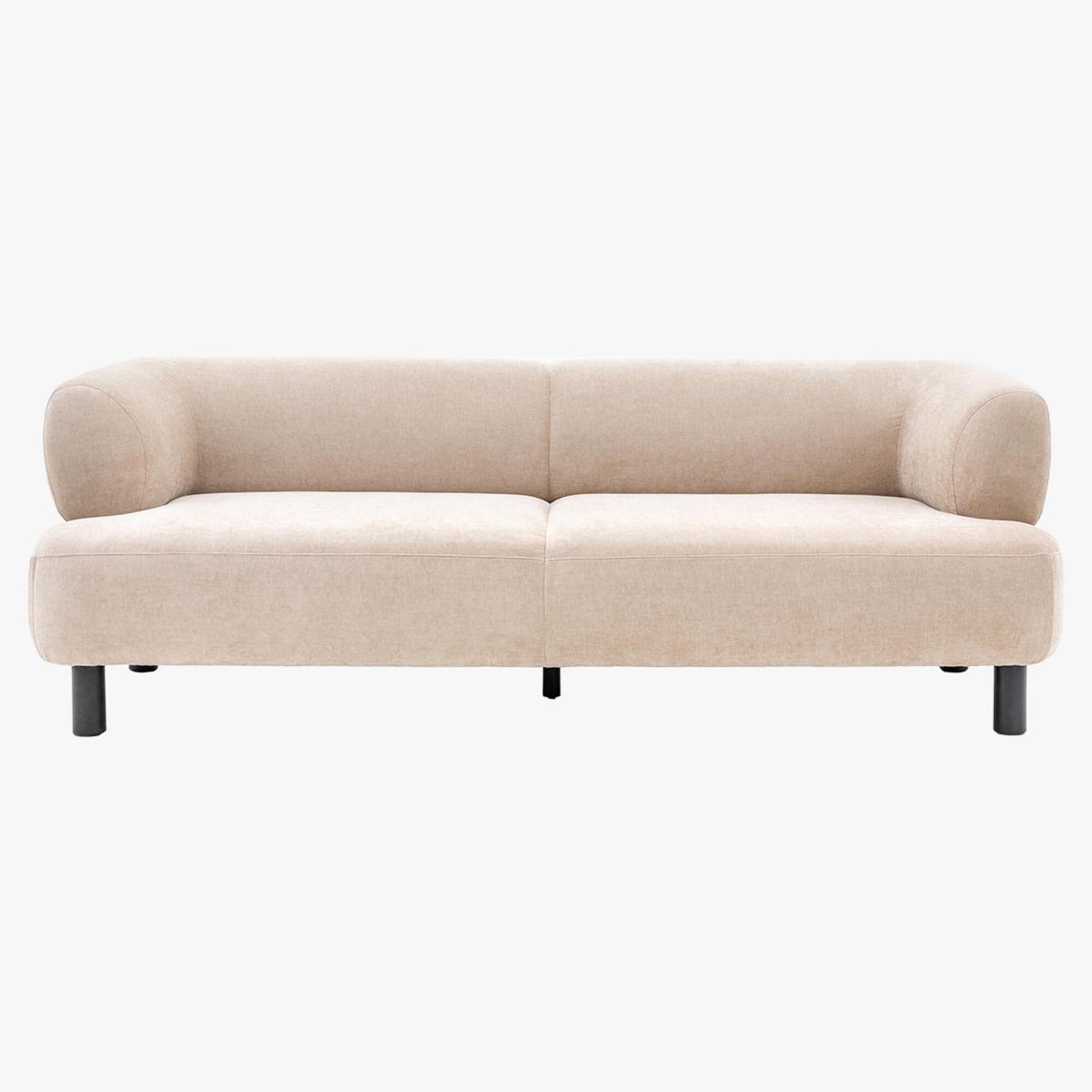 I love this sofa for its modern take on classic comfort, with its rounded arms and streamlined silhouette. The slate colour makes it versatile, fitting seamlessly into both contemporary and slightly more traditional interiors. It works particularly well in minimalist schemes, Scandinavian-inspired spaces, or paired with textured throws and cushions for a cosy feel. Practical styling tips include keeping accessories simple to highlight the sofa’s design, and placing it against a neutral or lightly patterned backdrop to really make the fabric colour pop. Its understated elegance makes it a great anchor piece that can be dressed up or down depending on the vibe you want to create.