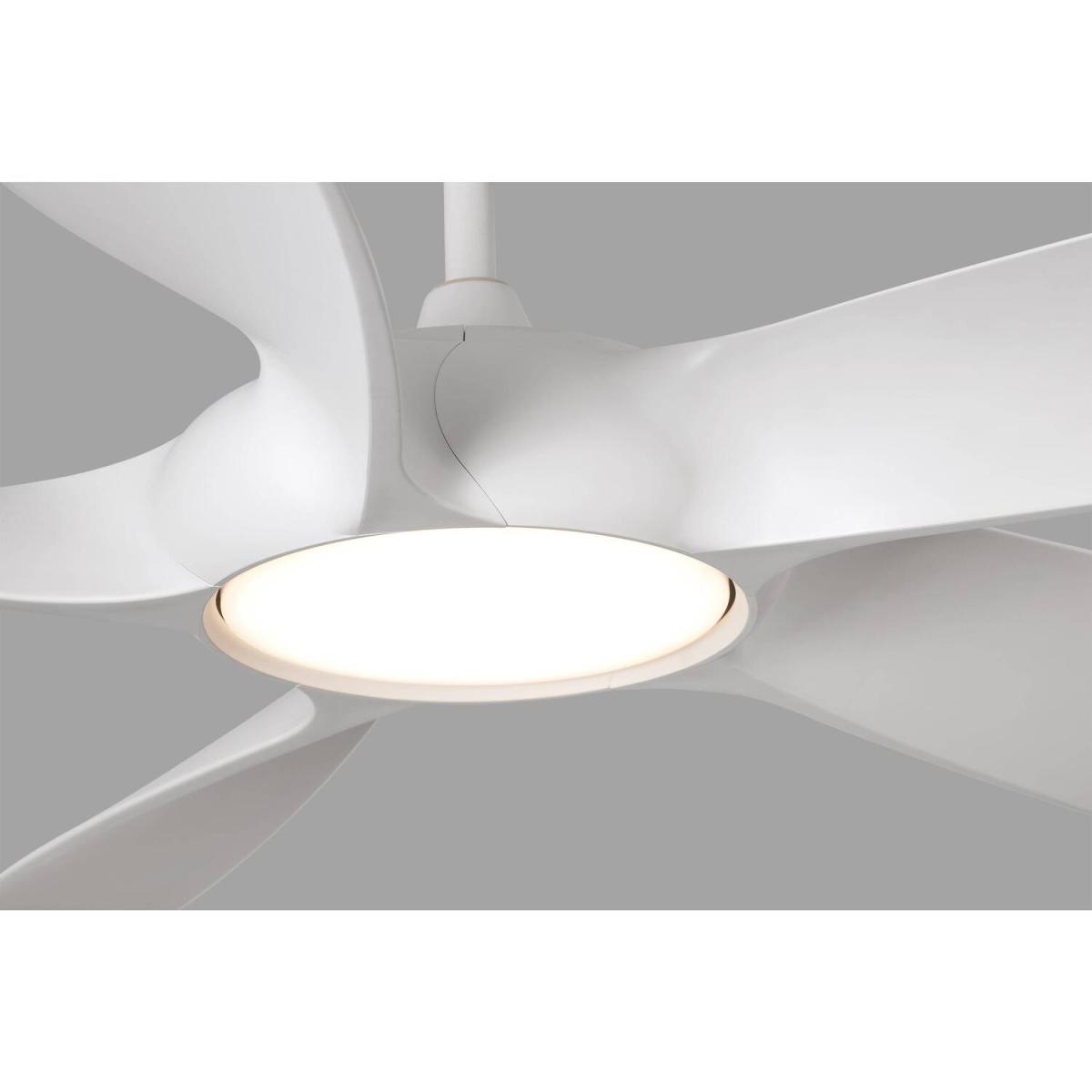 This modern design illuminated ceiling light is the ideal choice for any room. Be it living room, kitchen or bedroom, the fitting will slip in among the decor and provide additional light and airflow. The white finish allows the fitting to match different colour schemes. This large fitting is designed for rooms between 17.6m2 and 28m2. DC motor. Remote control included. Summerwinter function. Suitable for mounting on a sloping ceiling. Longer rod available for order separately. 7-29. W. 66-146 RPM.