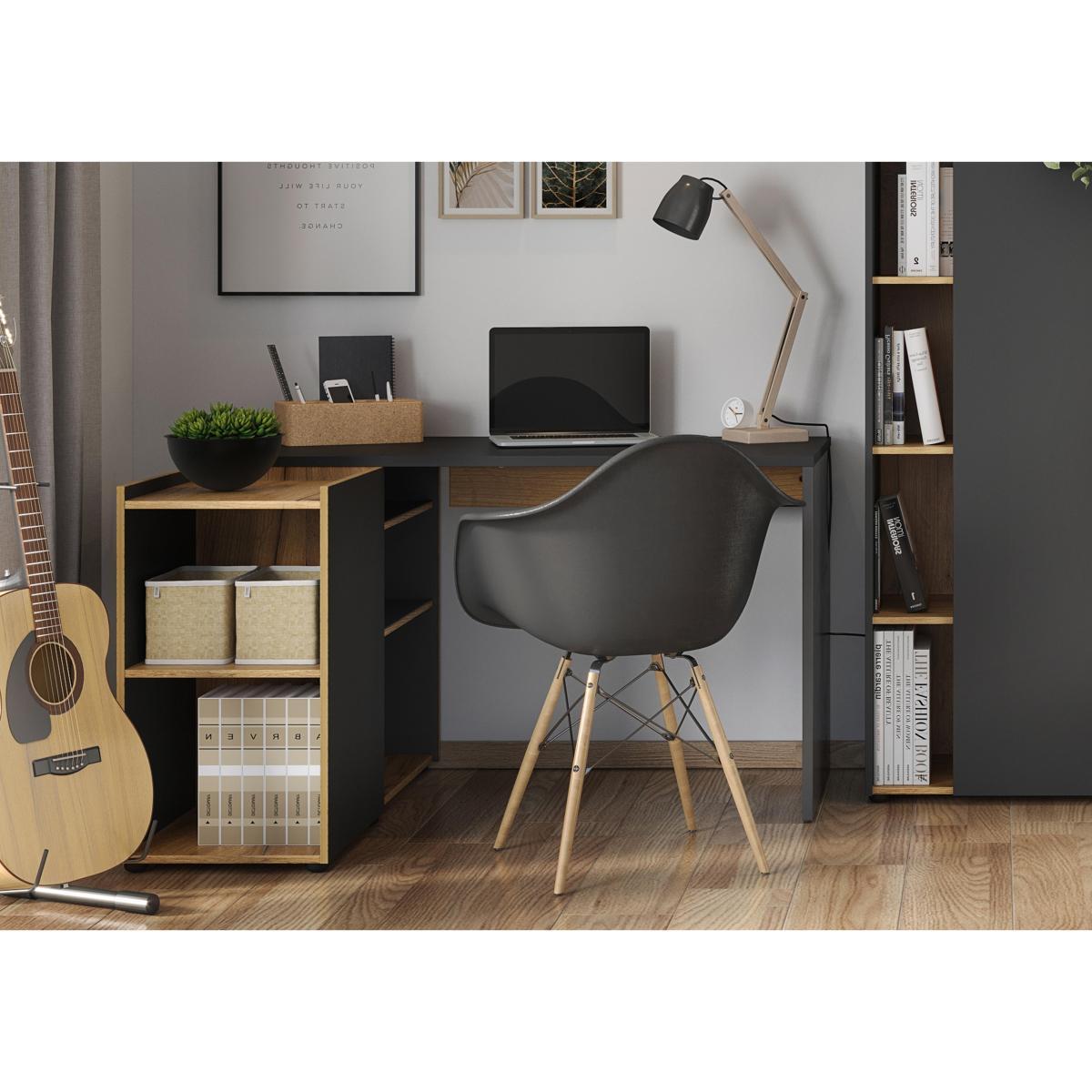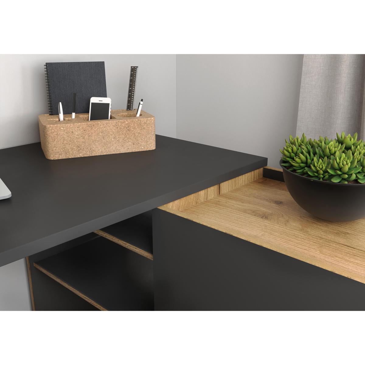Cool style, functionality and craftsmanship. If you’re working from home, choose an office desk and storage arrangement that really does tick all the boxes. Our Cody collection — a Furniture Village online exclusive — offers a versatile corner desk with storage as well as a choice of shelving units for files, books and stationery. Made in Germany, the Cody range is made with care, durable and sturdy, whatever the size and scale of your computer setup or filing system. And the anthracite and oak-effect finish is so on trend too. Here’s the perfect home office corner desk. It’s reversible — you can have the shelving on either side — as well as stylish, and the oak-and-grey combo is right on trend. Carefully made in Germany. *This is a self-assembly item*. Why you'll love it. Reversible corner desk with flexible storage. Cool and contemporary home office style. On-trend anthracite and oak-effect finish. Desk and shelf arrangement offers plenty of space for work, storage and display. Sturdy and stable — desk and shelves are designed to be load-bearing. Impact-resistant edges. Made with care in Germany. A Furniture Village online exclusive. What you need to know. Resin-coated melamine surfaces are extremely durable. 2 shelving units each with 3 shelves. Reversible — shelving sections can be positioned on left- or right-hand side. Delivered flat-packed — self-assembly required. Part of the Cody range of versatile, modular home office furniture.