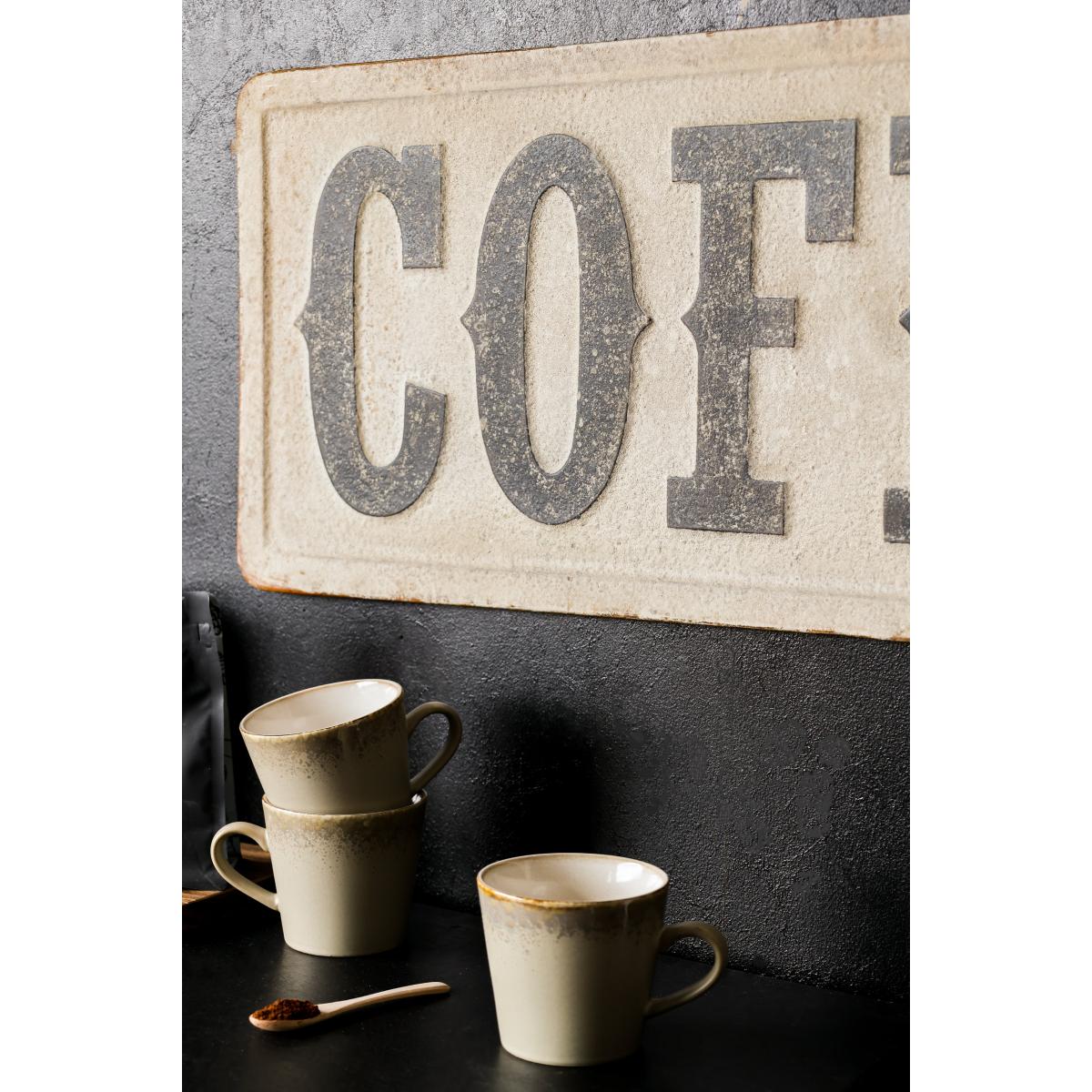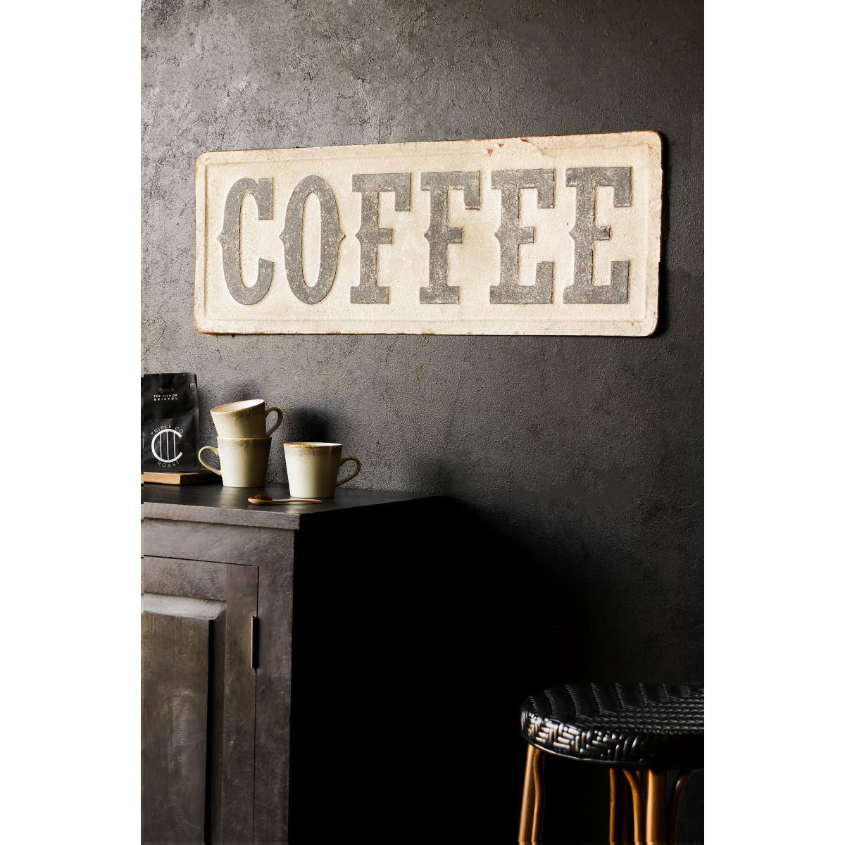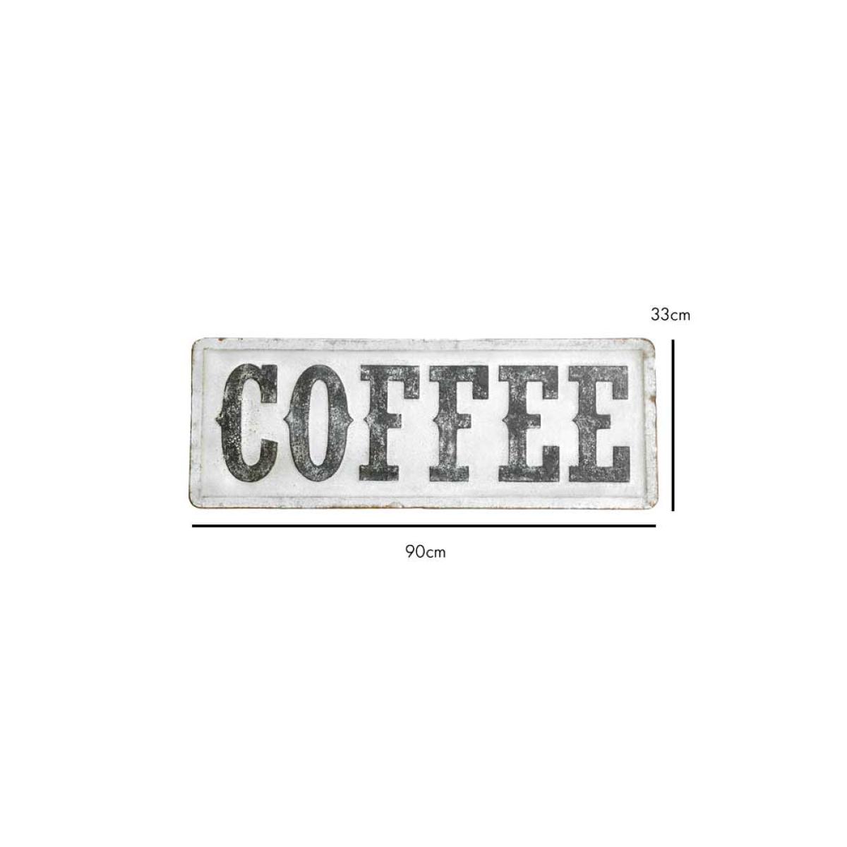 The Coffee Metal Wall Art Sign introduces a strong shot of personality to the walls of your kitchen or dining room. You cannot beat typography art in the kitchen. From sassy slogans to statement words that sum up the mood of your morning, typography has an effortless style. Perfect for those that live by the words “but first, coffee”, the coffee metal wall sign celebrates the importance of our caffeine rituals in getting shit done throughout the day. So, whether you’re in an espresso, cappuccino or latte state of mind, this playful piece of kitchen wall art is for you. Practical and chic, the coffee metal wall sign has a rustic aged finish that could easily be mistaken for vintage. Reminiscent of old-school shop signs, the design highlights your tea and coffee station in the kitchen. Now it's time to master your barista game! Also available in a larger width with the words “Eat” or “Gin” across the distressed surface, the metal wall art collection has something for every kitchen personality. Metal typography wall sign with an aged finish Measures: H33cm x W90cm Hooks included to hang on the wall