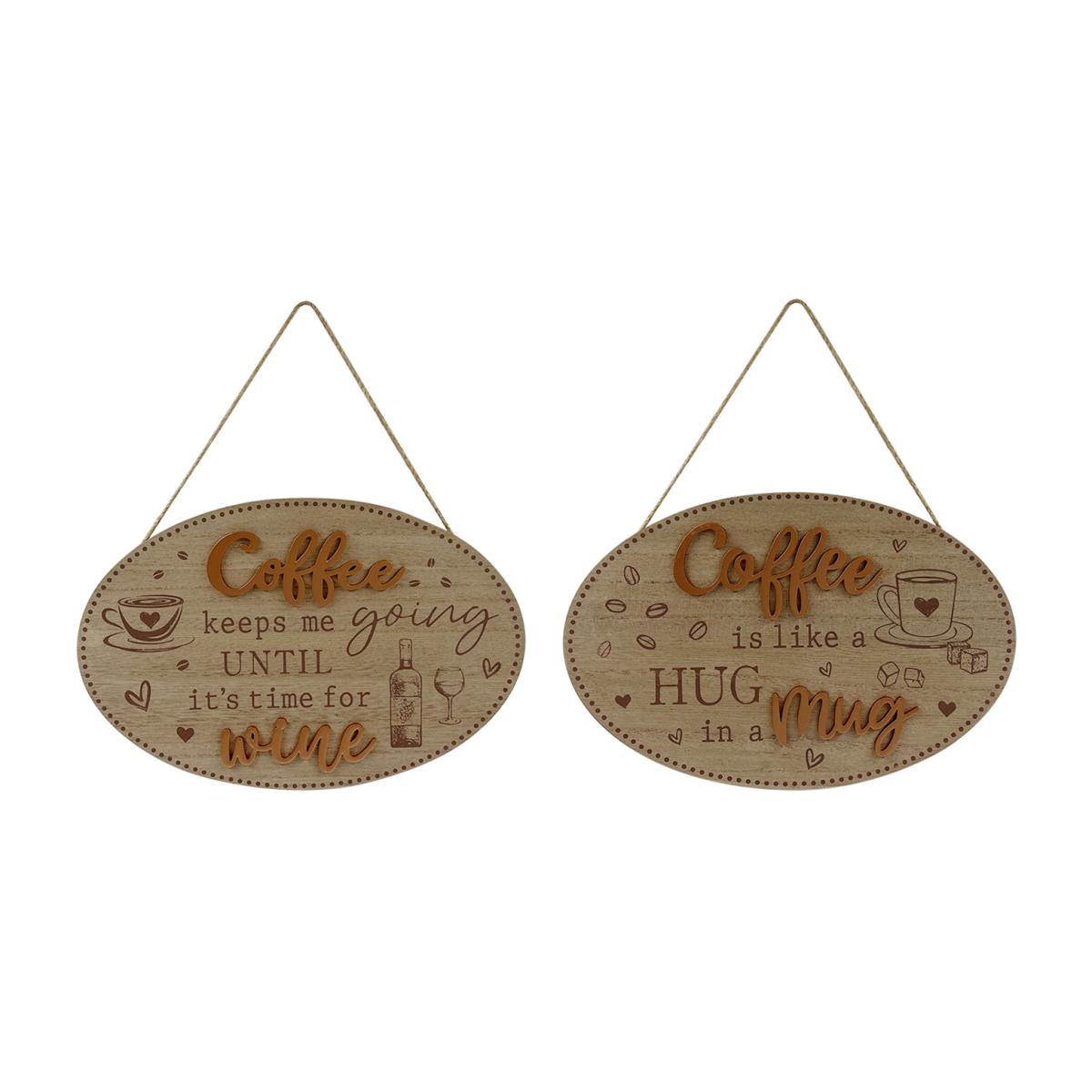Add a touch of charm and personality to your space with this Coffee Slogan Hanging Plaque. Crafted from MDF and featuring bold 3D lettering, this eye-catching piece is perfect for infusing your kitchen or coffee nook with warmth and style. Whether you're a coffee aficionado or just love a cosy vibe, it's a must-have addition to any home decor.